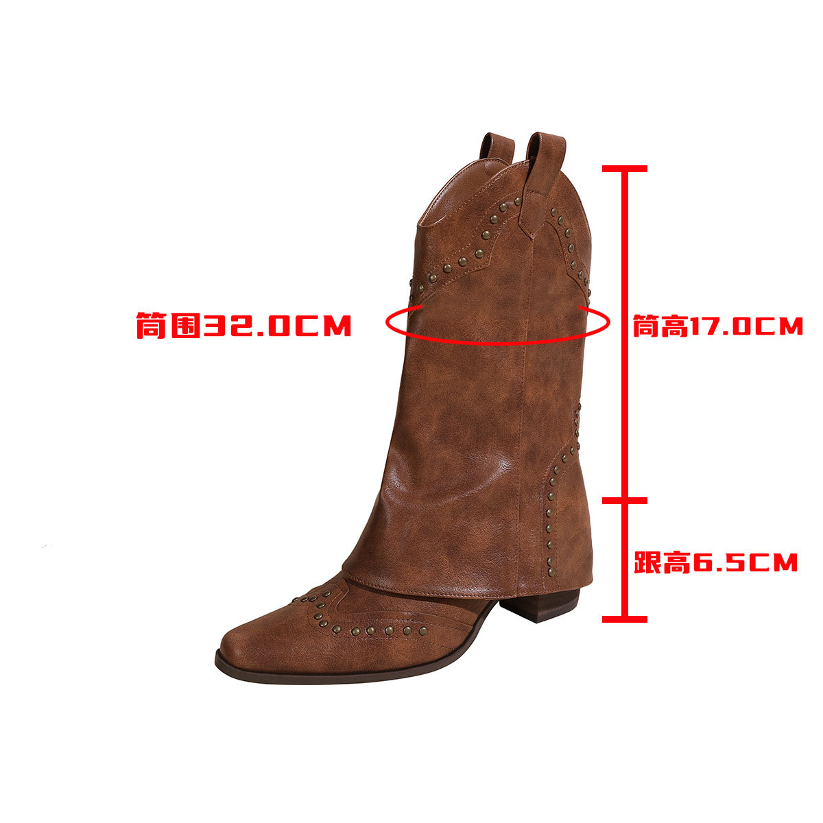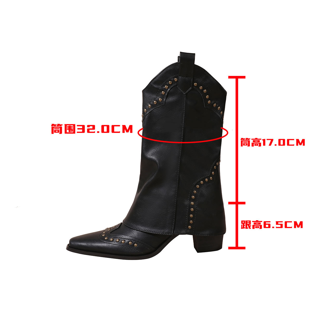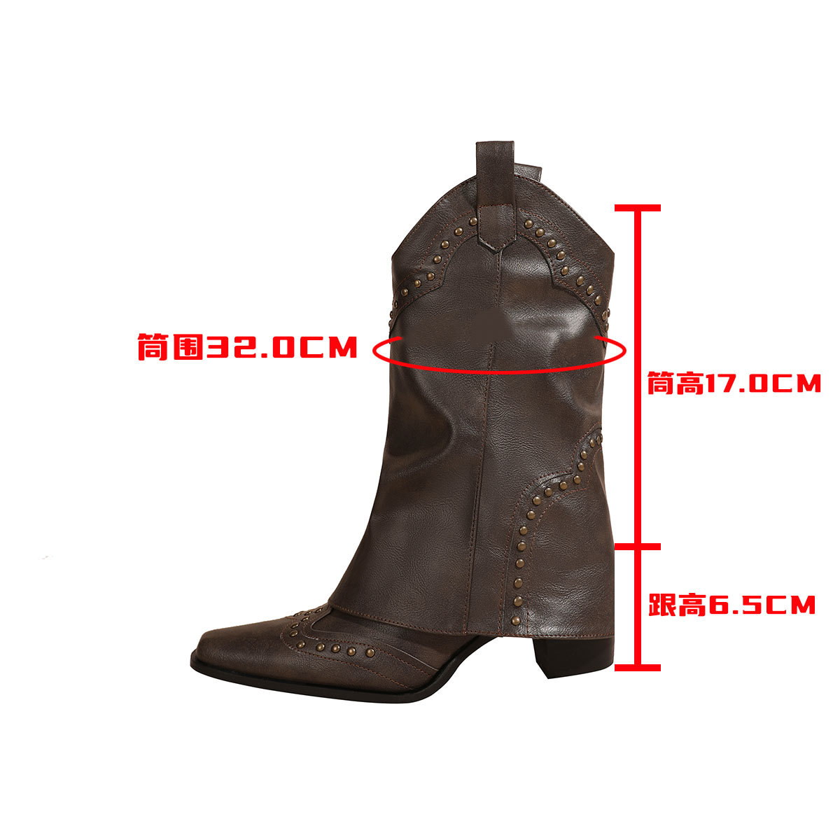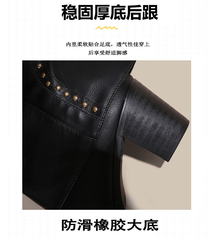 뾰족코 웨스턴 부츠 여성 숏부츠 봄 가을 신상 레트로 브라운 리벳 팬츠부츠 다용도 두꺼운 굽 중간 길이 벨벳 부츠