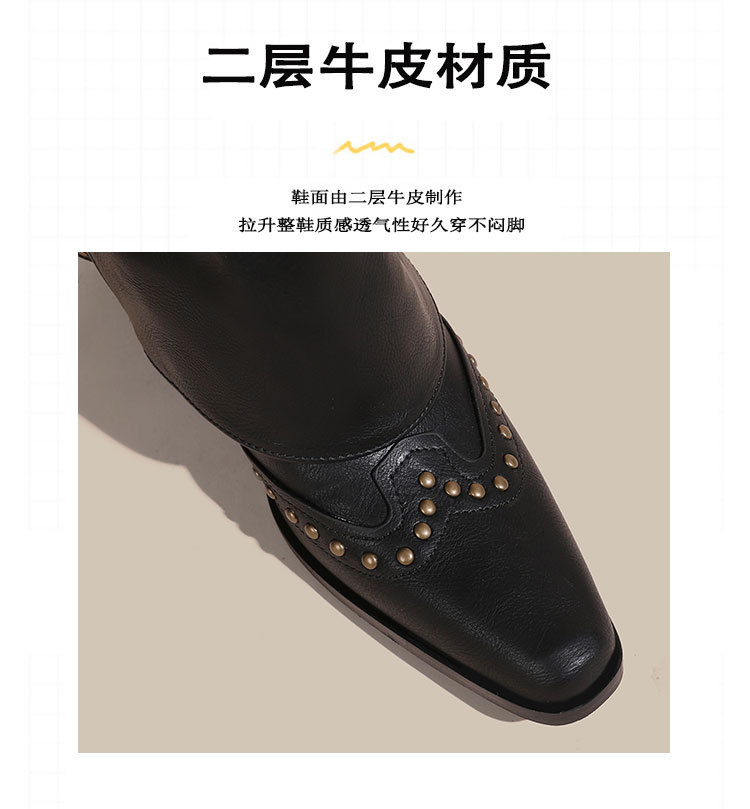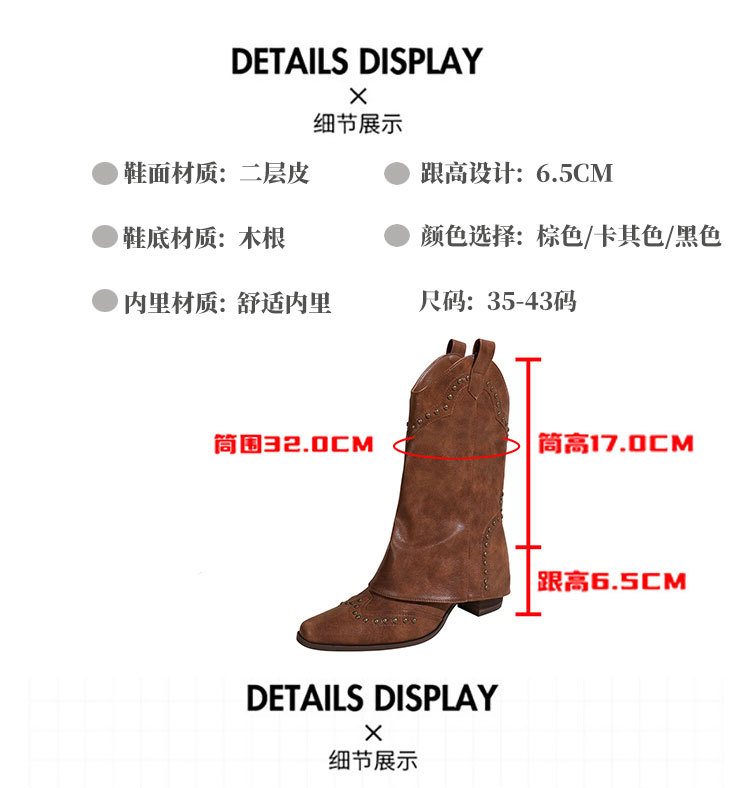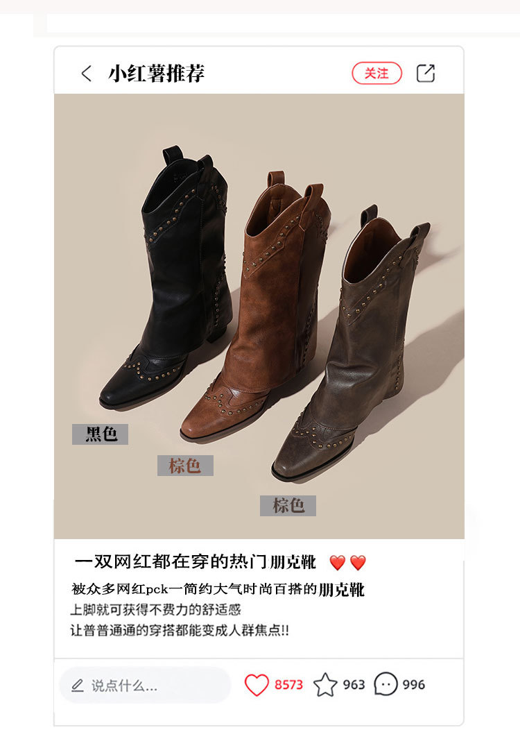 뾰족코 웨스턴 부츠 여성 숏부츠 봄 가을 신상 레트로 브라운 리벳 팬츠부츠 다용도 두꺼운 굽 중간 길이 벨벳 부츠스토어 가기