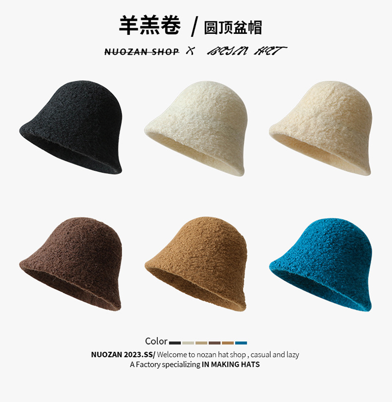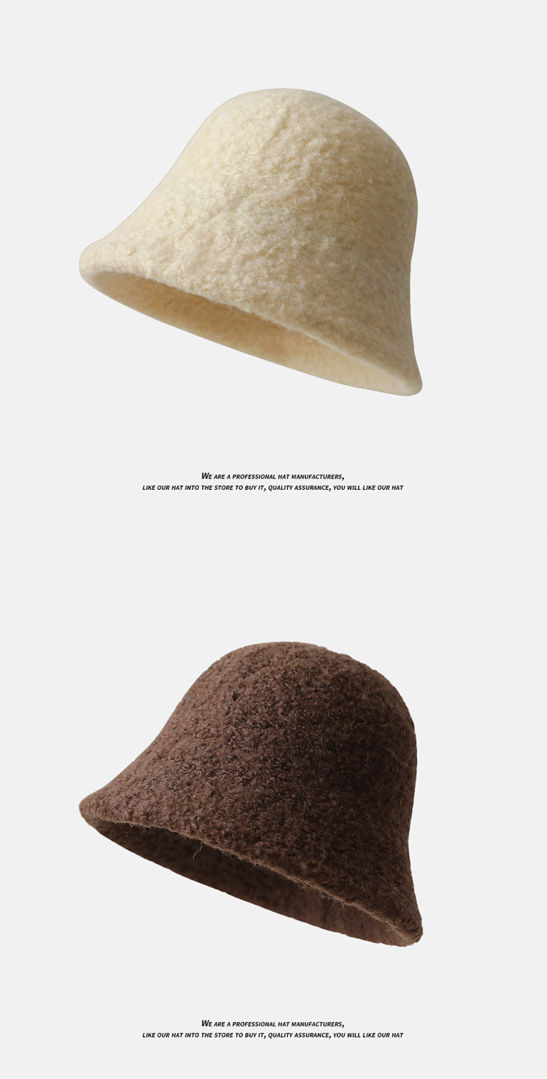 모자 가을 겨울 양모 버킷햇 여성용 심플한 디자인 얼굴을 작아 보이게 하는 단색 어부 모자 야외용 플러스 벨벳 두꺼운 보온 모자스토어 가기