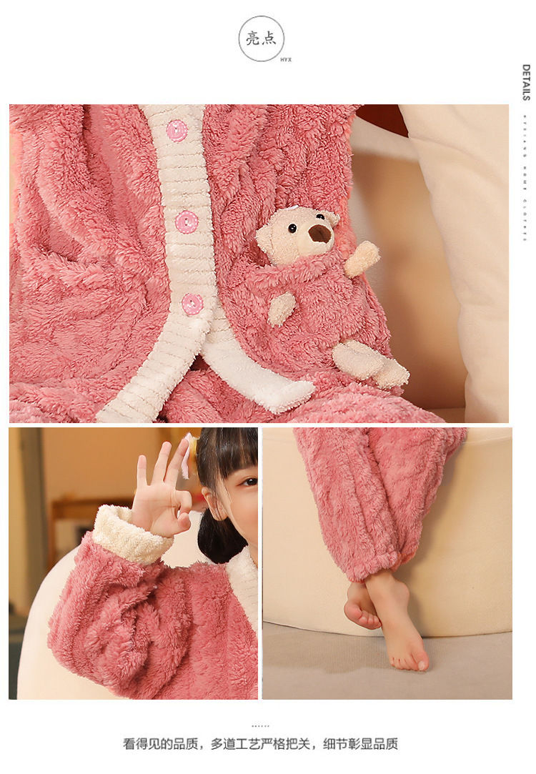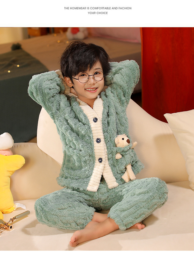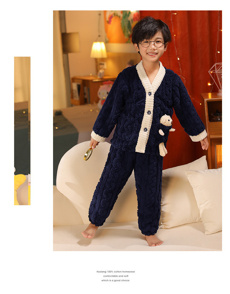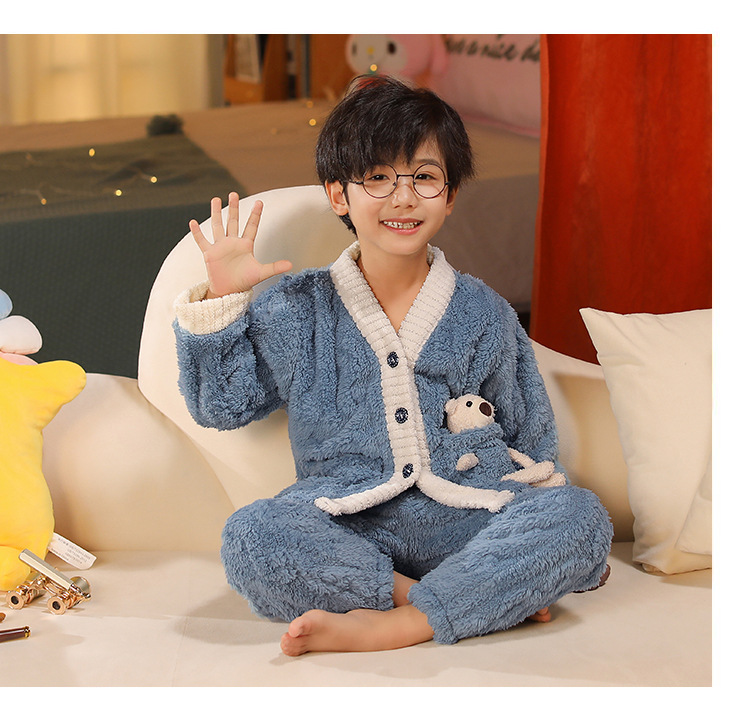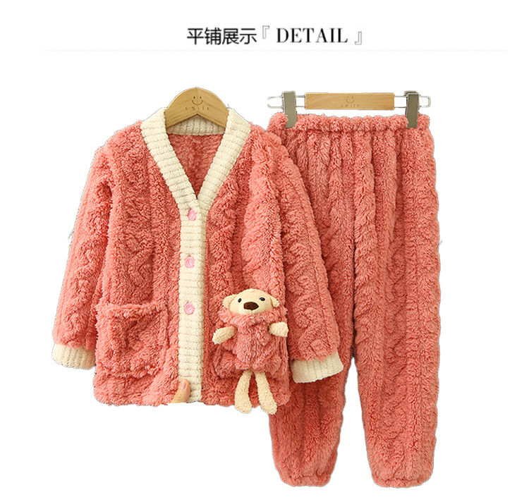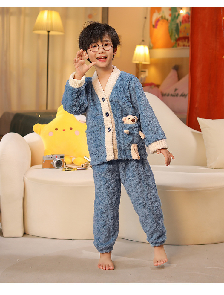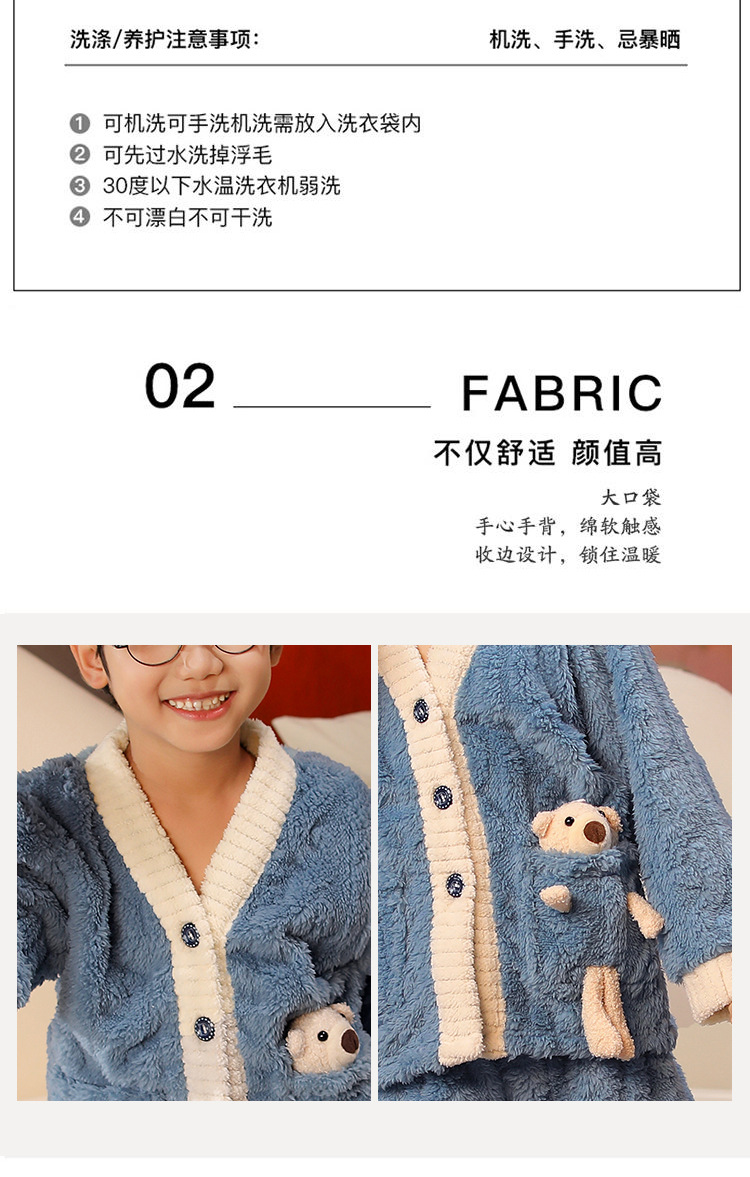 가을과 겨울 새로운 어린이 플란넬 잠옷 아기 두꺼운 겉옷 가정복 남아 '큰 어린이 산호 양털 세트스토어 가기
