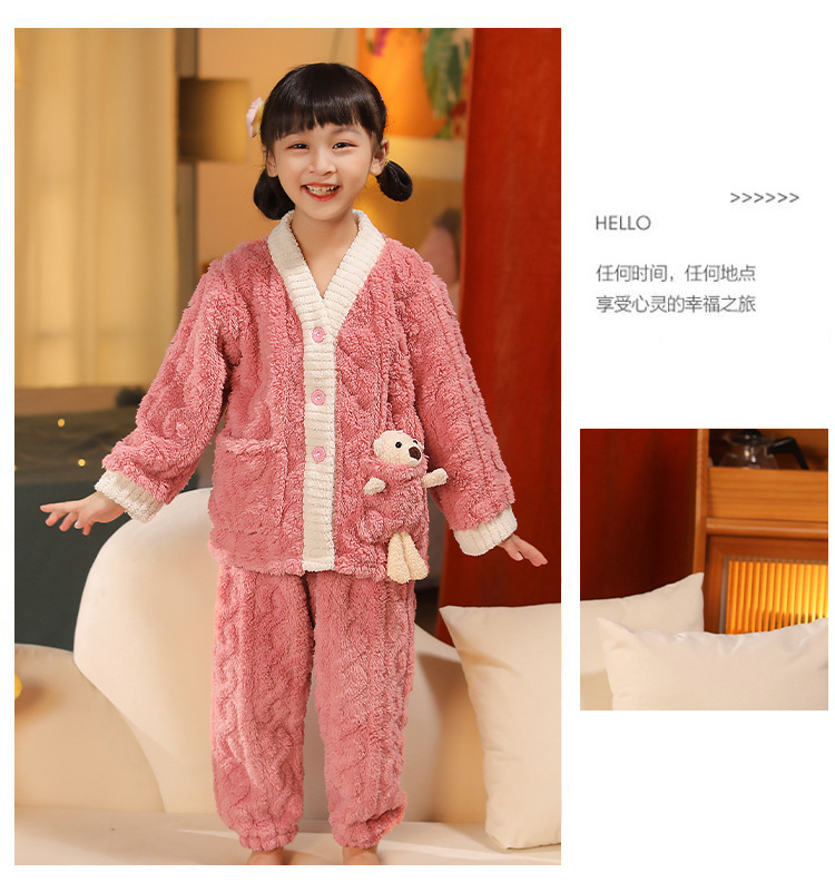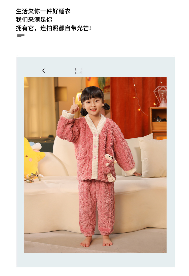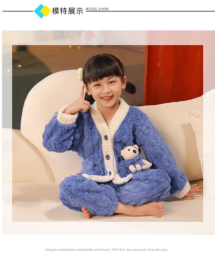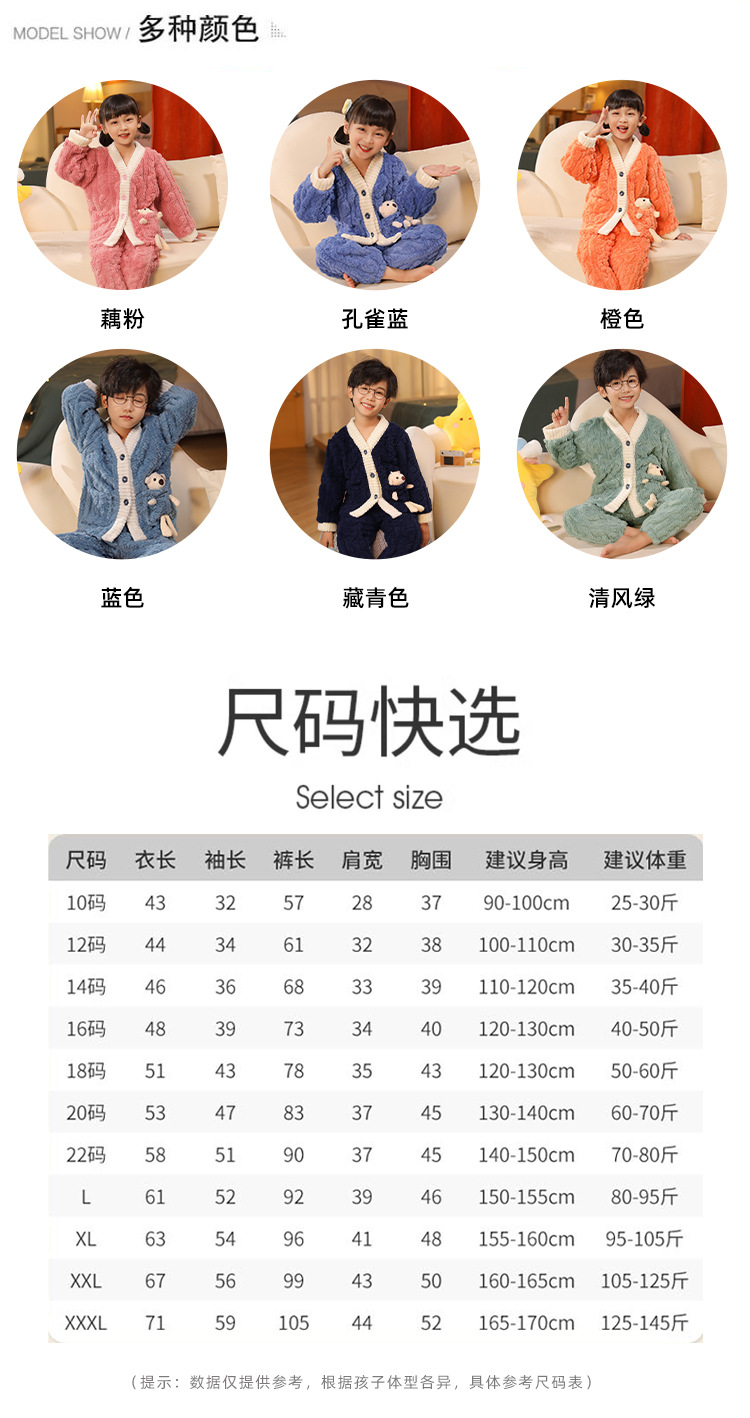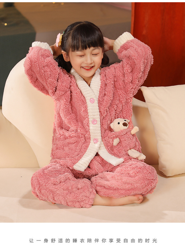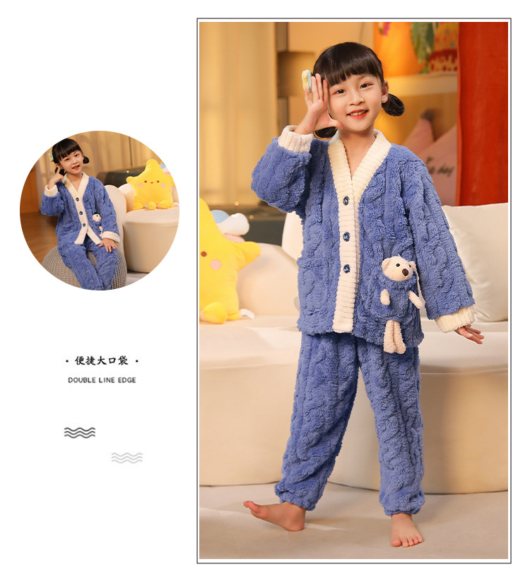 가을과 겨울 새로운 어린이 플란넬 잠옷 아기 두꺼운 겉옷 가정복 남아 '큰 어린이 산호 양털 세트스토어 가기