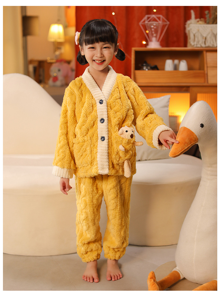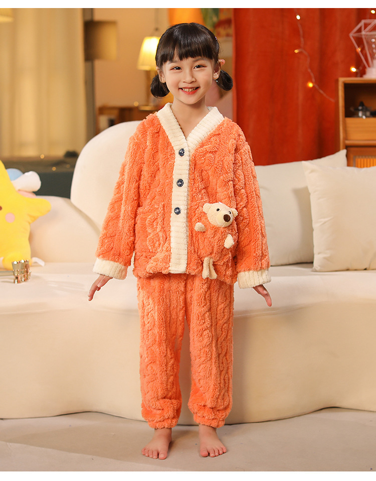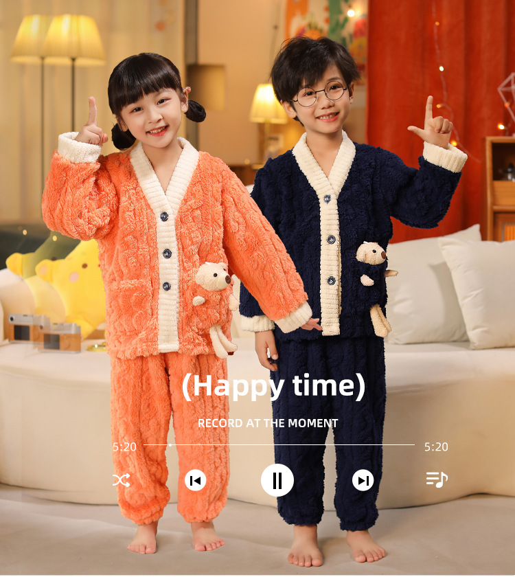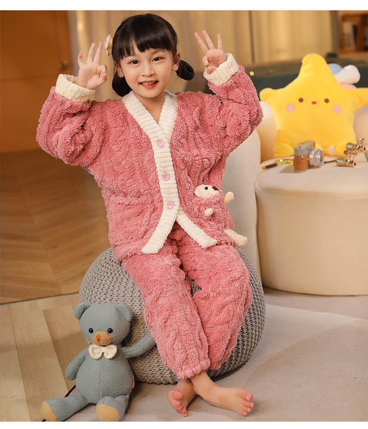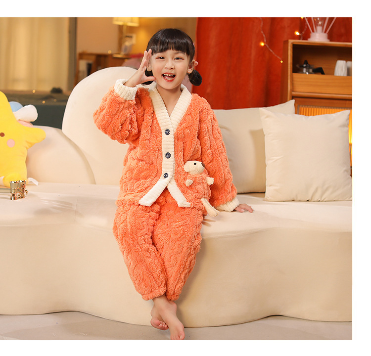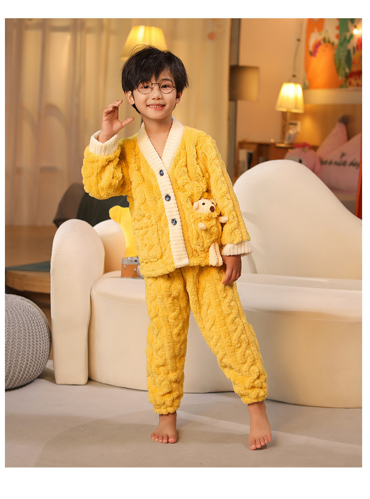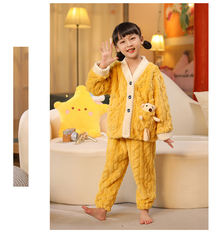 가을과 겨울 새로운 어린이 플란넬 잠옷 아기 두꺼운 겉옷 가정복 남아 '큰 어린이 산호 양털 세트스토어 가기