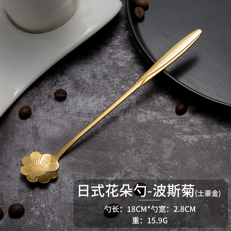스테인리스 스틸 가정용 고급스러운 금색 벚꽃 스푼, 디저트 스푼, 독창적인 커피 믹싱 스푼, 웨딩용 작은 스푼스토어 가기