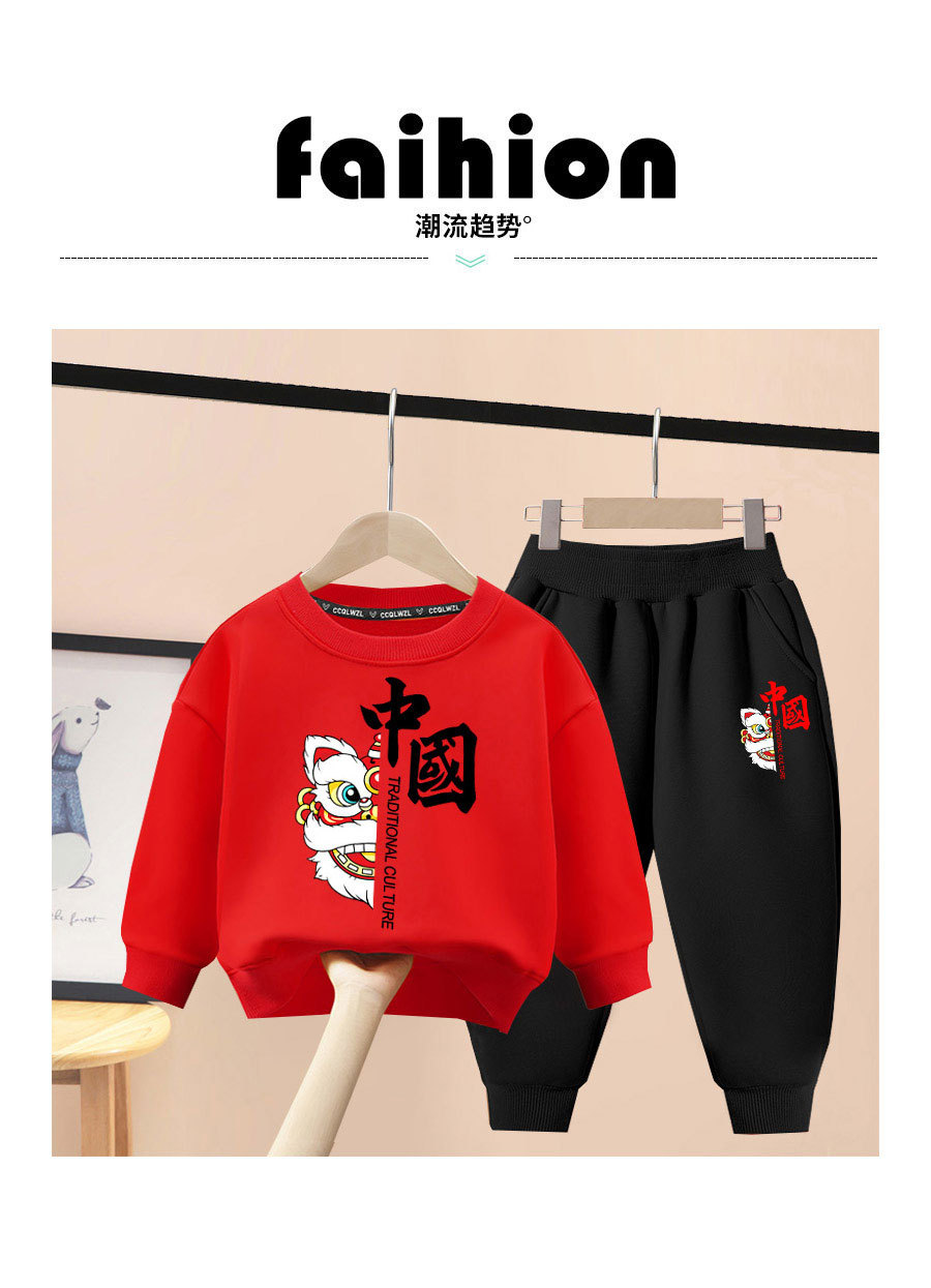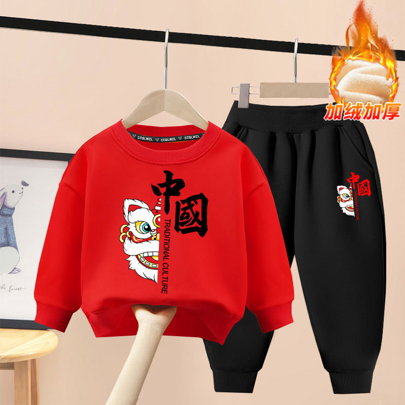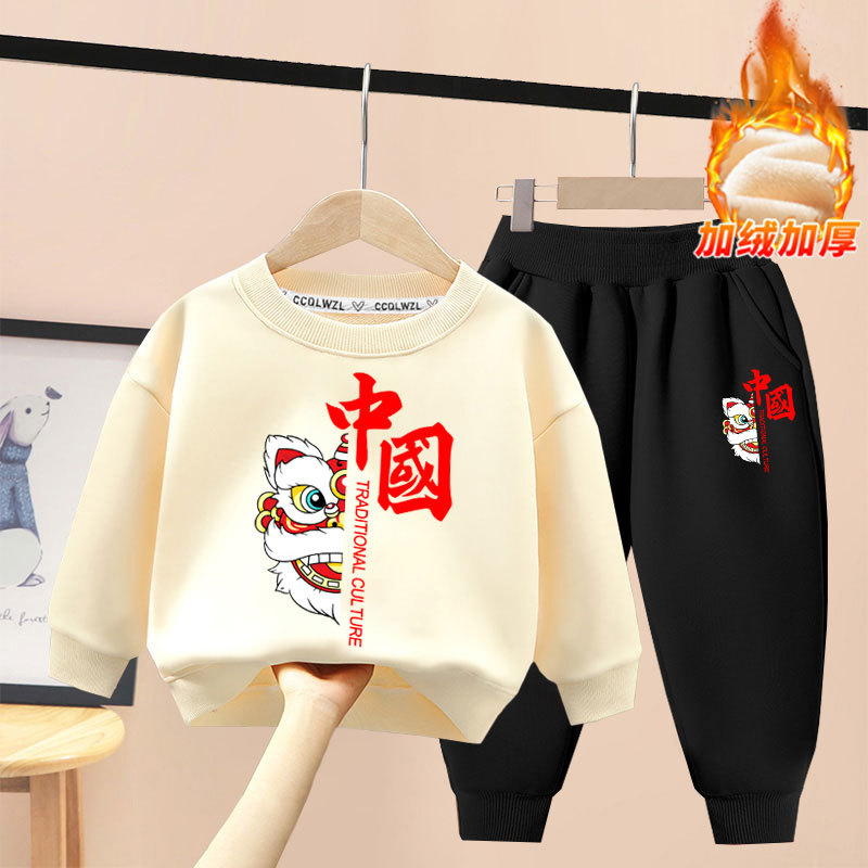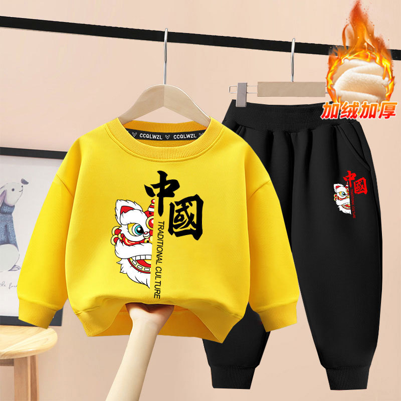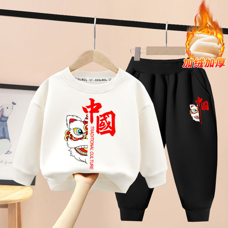 어린이 면 스웨터 가을과 겨울 의류 세트 2023 새로운 서양식 스포츠 기모 두꺼운 2 종 세트스토어 가기