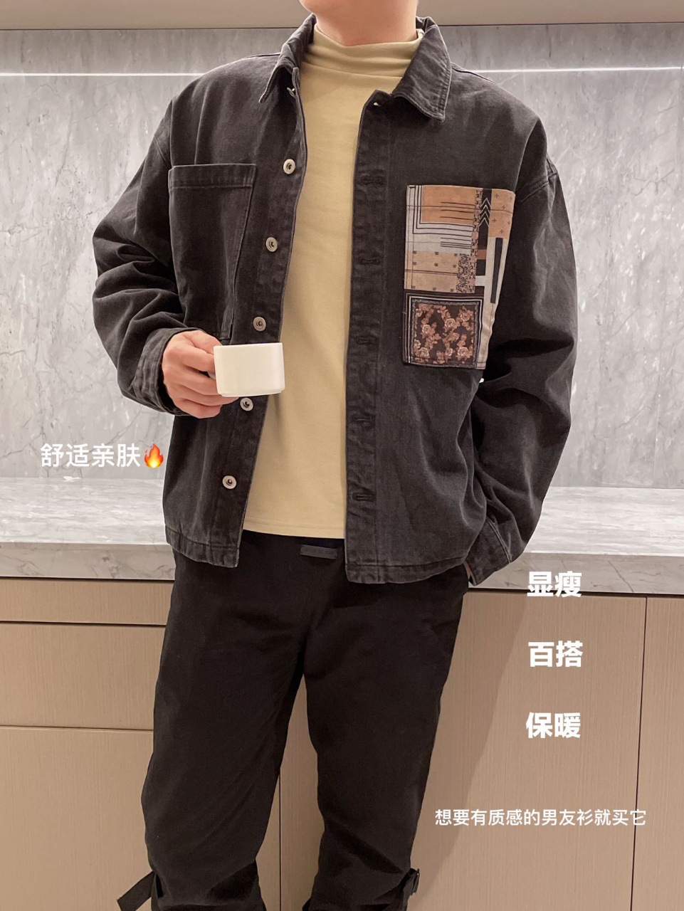동대문 남자친구 셔츠 3.0 마이크로 벨벳 가을과 겨울 남자 편안한 슬림핏 올매치 내탑 하프 하이 칼라베이스 셔츠스토어 가기
