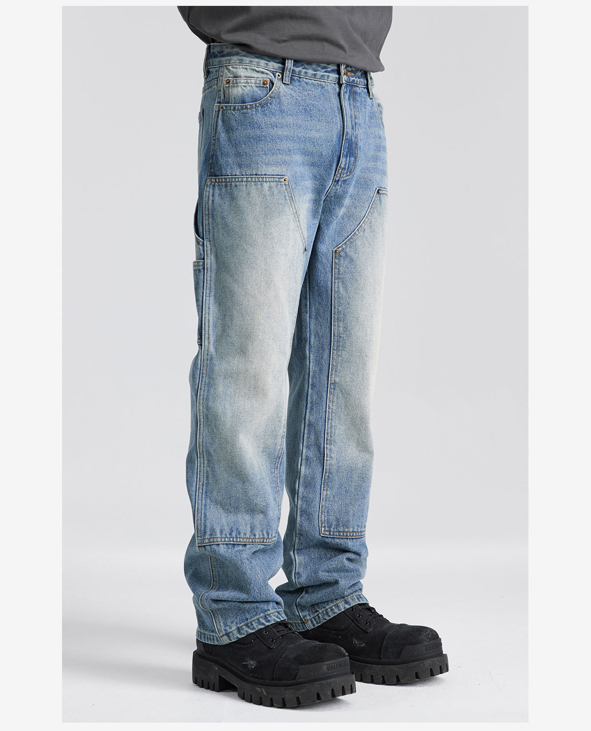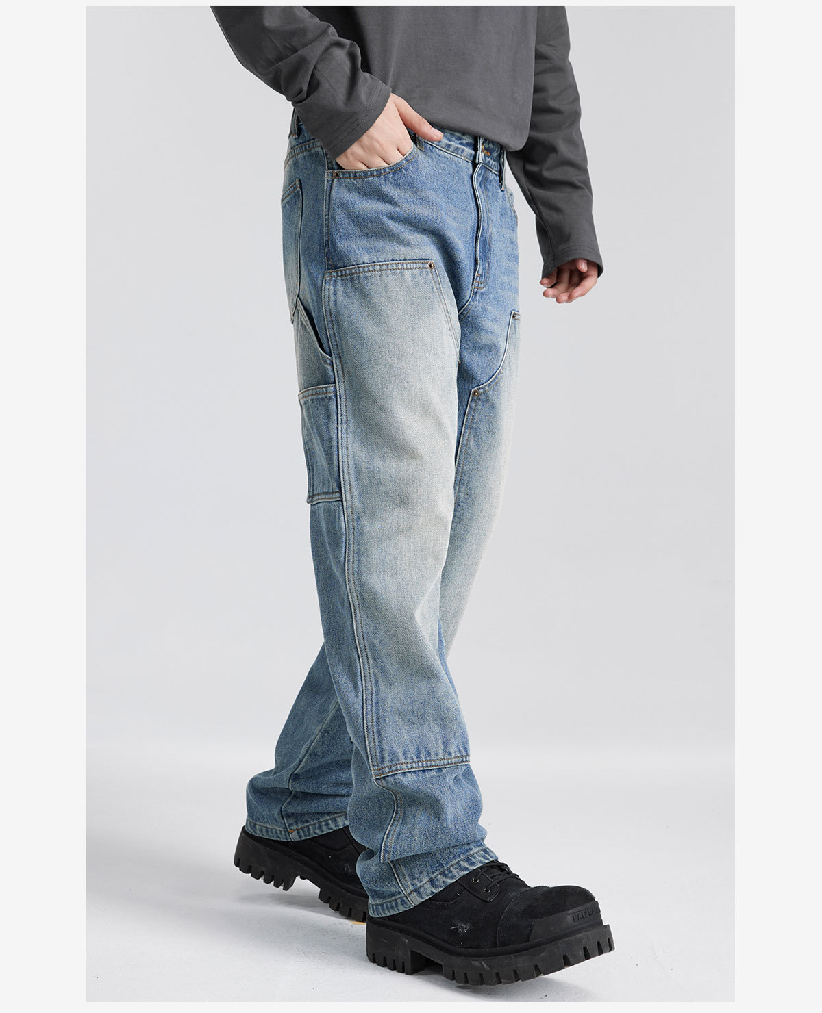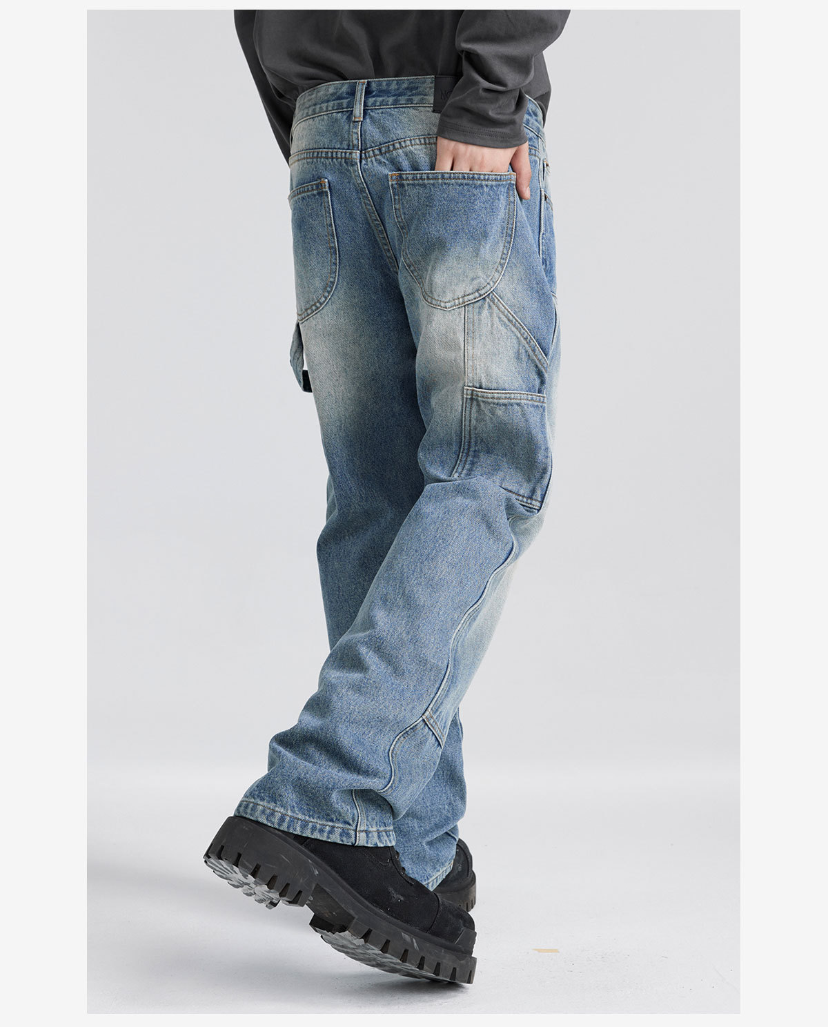 미국식 하이 스트리트 청바지 남성용 클린핏 워싱 데님 워크웨어 바지, 국민 스타일 바이브 캐주얼 롱 팬츠 남성용스토어 가기
