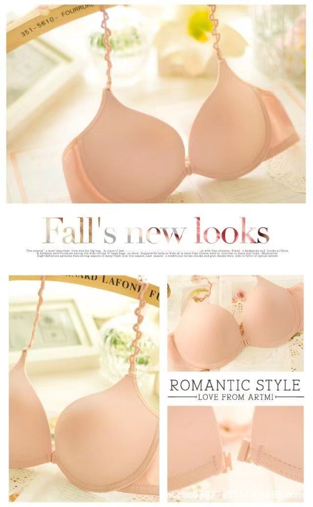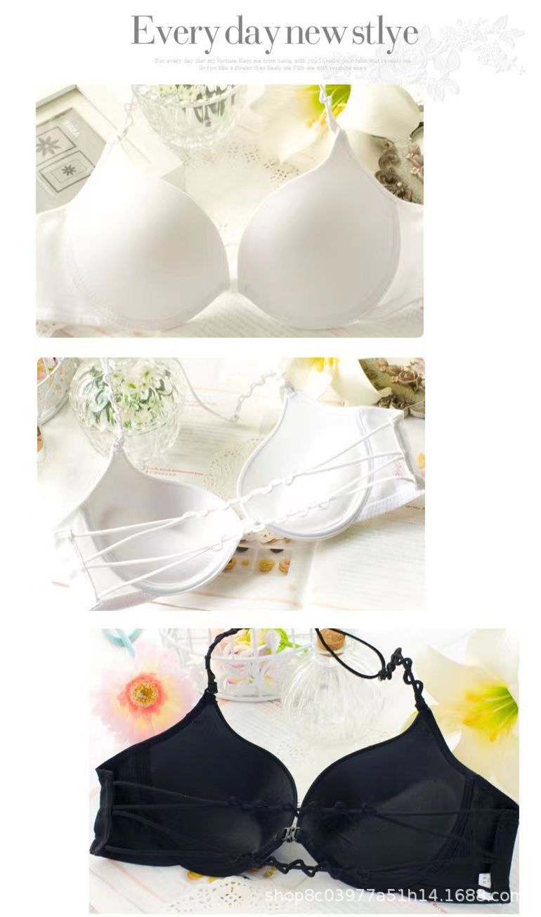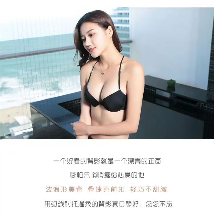 섹시한 아름다운 등 매달려 목 앞 버튼 브래지어 푸시 업 두꺼운 속옷 여성의 광택 원활한 얇은 브래지어 쇼백 작은 브래지어스토어 가기