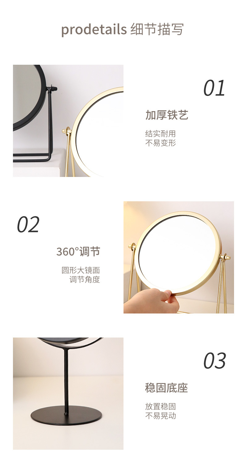 북유럽 스타일 철 아트 미러 HD 데스크탑 메이크업 거울 홈 침실 메이크업 거울 데스크탑 장식 드레싱 거울