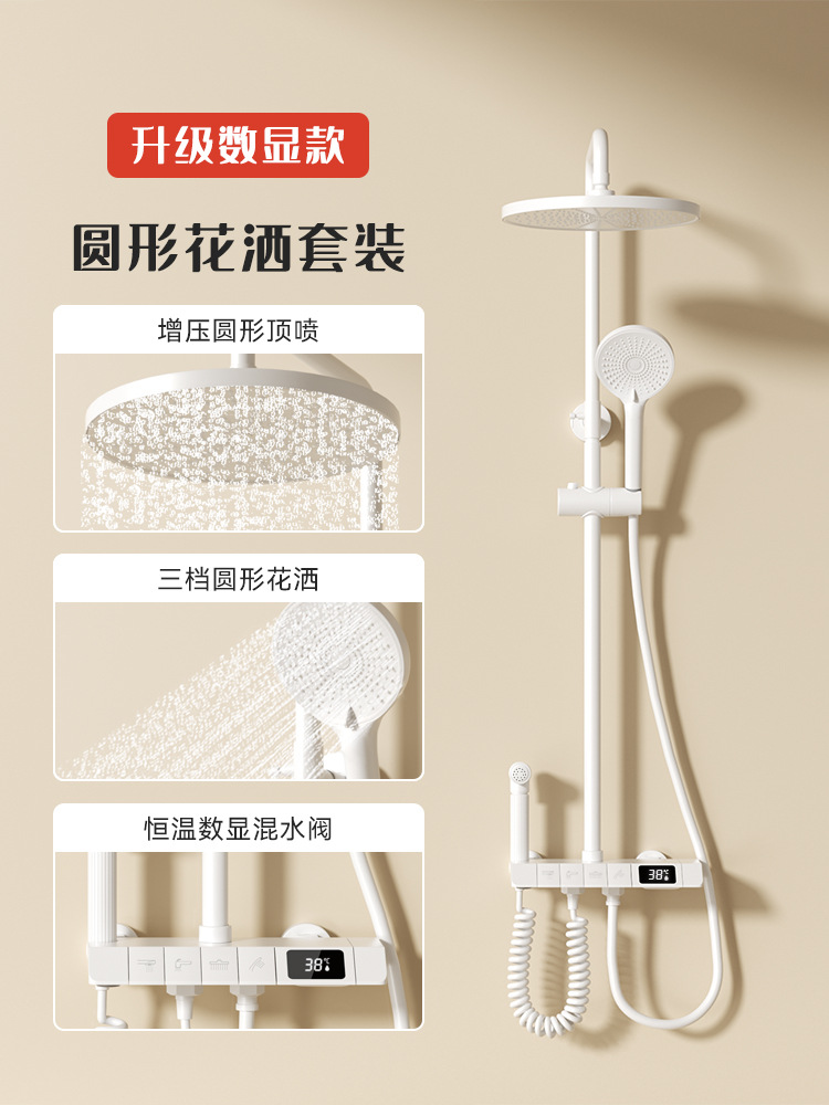• 크림 화이트 플래그십 디지털 디스플레이 라운드 샤워