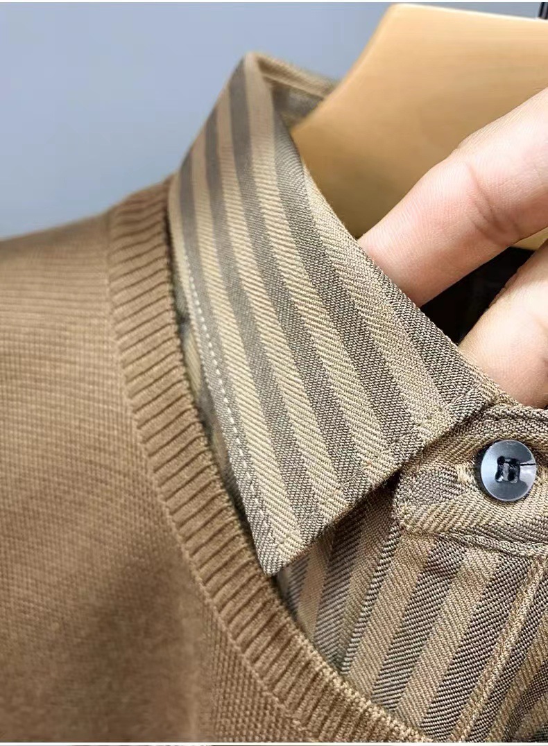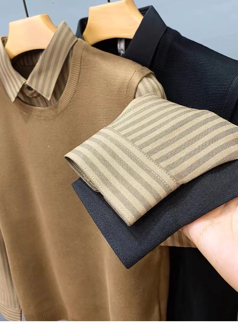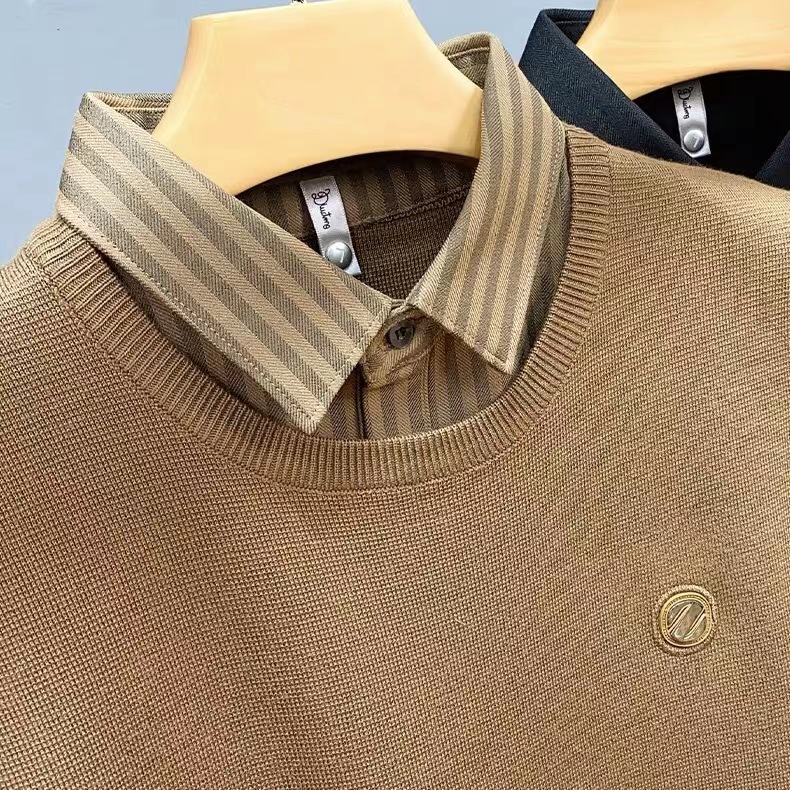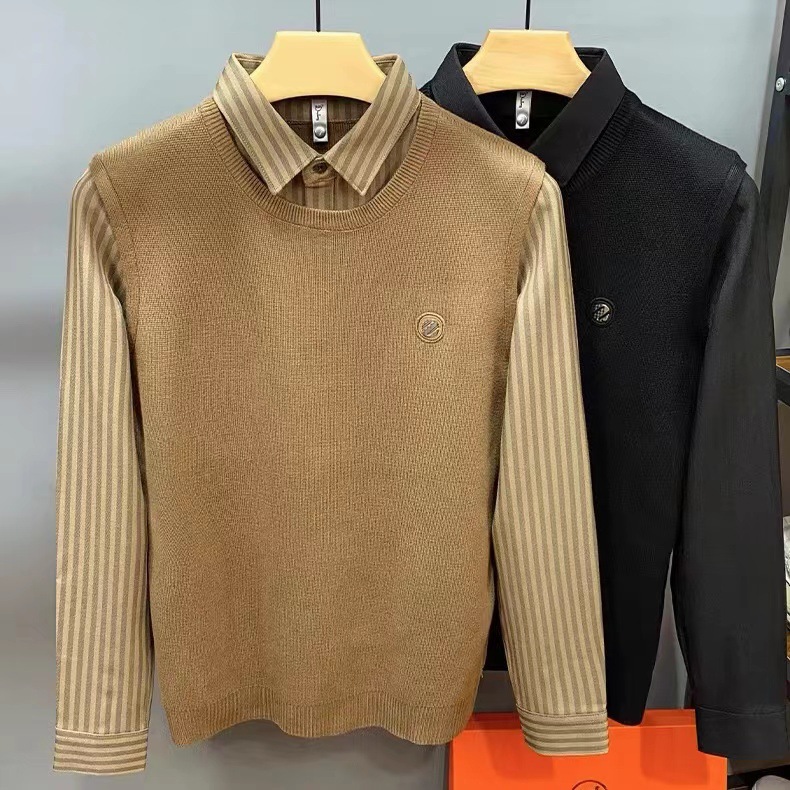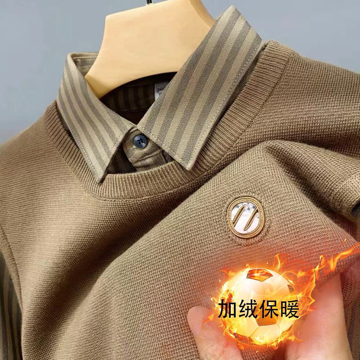 신상 겨울 두꺼운 보온 라펠 페이크 투피스 스웨터 남성 슬림핏 고급 유럽풍 캐주얼 13행 니트웨어