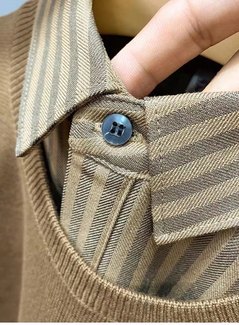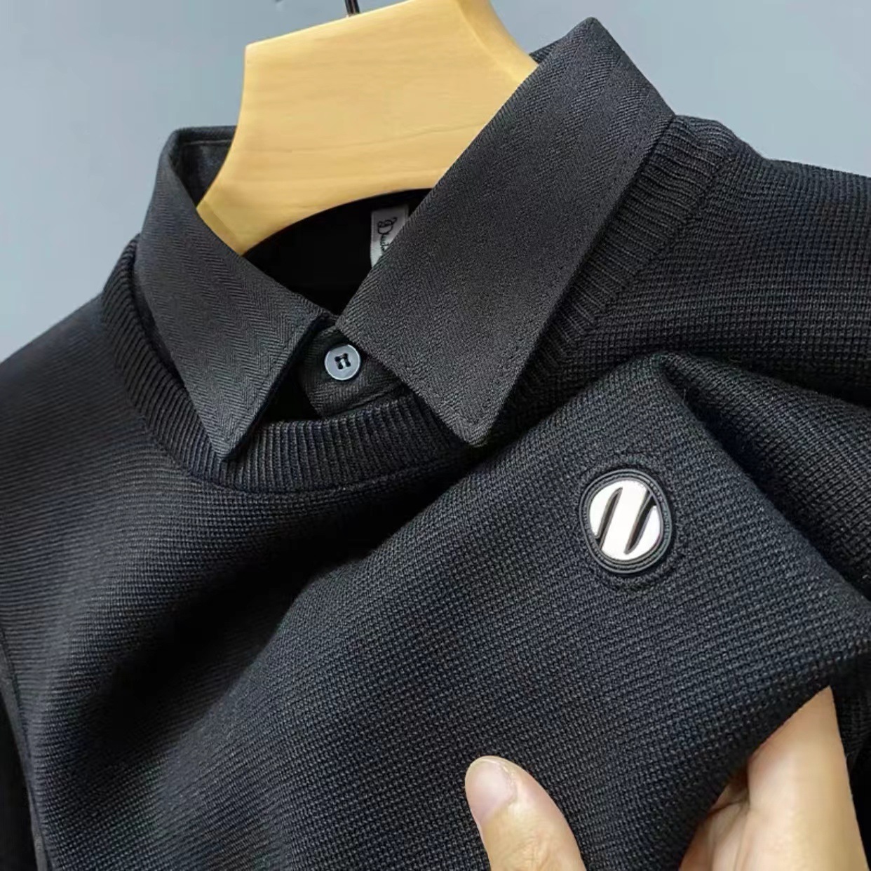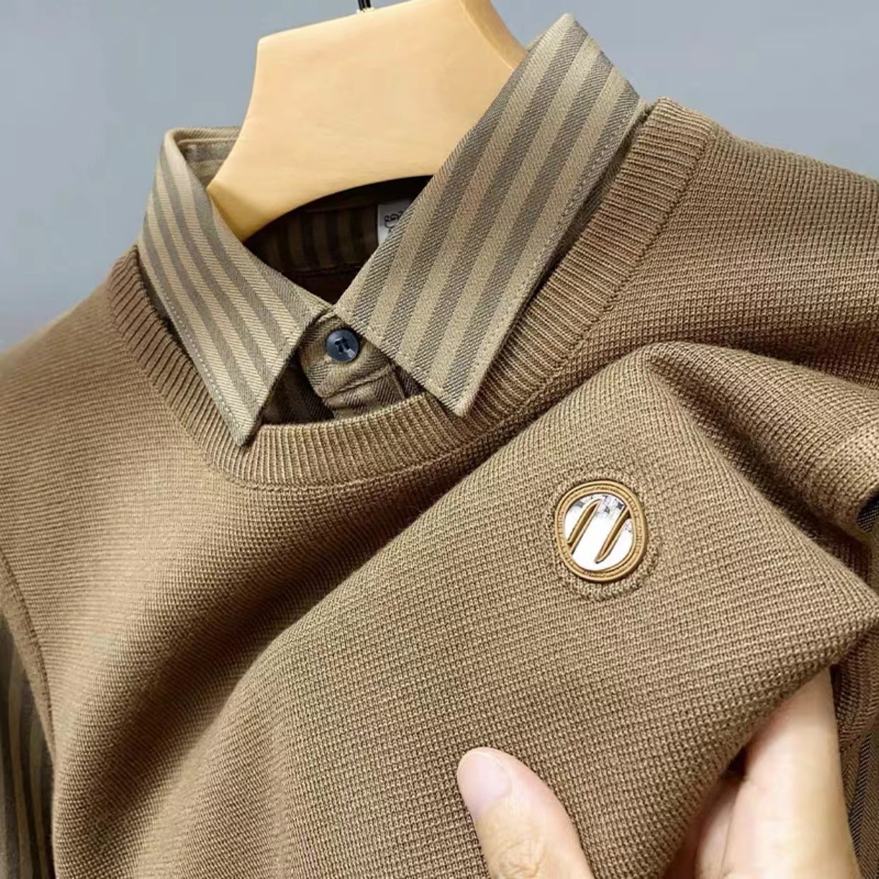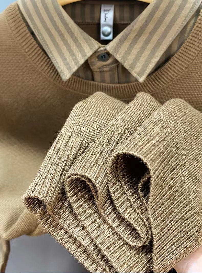 신상 겨울 두꺼운 보온 라펠 페이크 투피스 스웨터 남성 슬림핏 고급 유럽풍 캐주얼 13행 니트웨어
