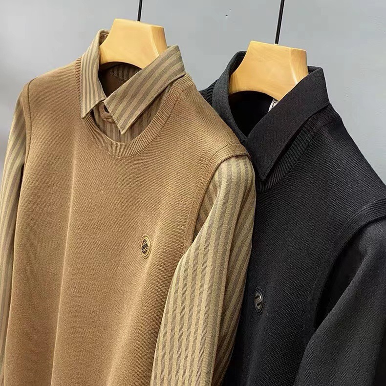 신상 겨울 두꺼운 보온 라펠 페이크 투피스 스웨터 남성 슬림핏 고급 유럽풍 캐주얼 13행 니트웨어스토어 가기