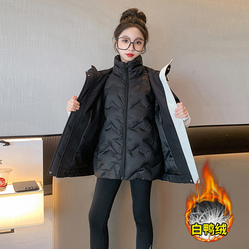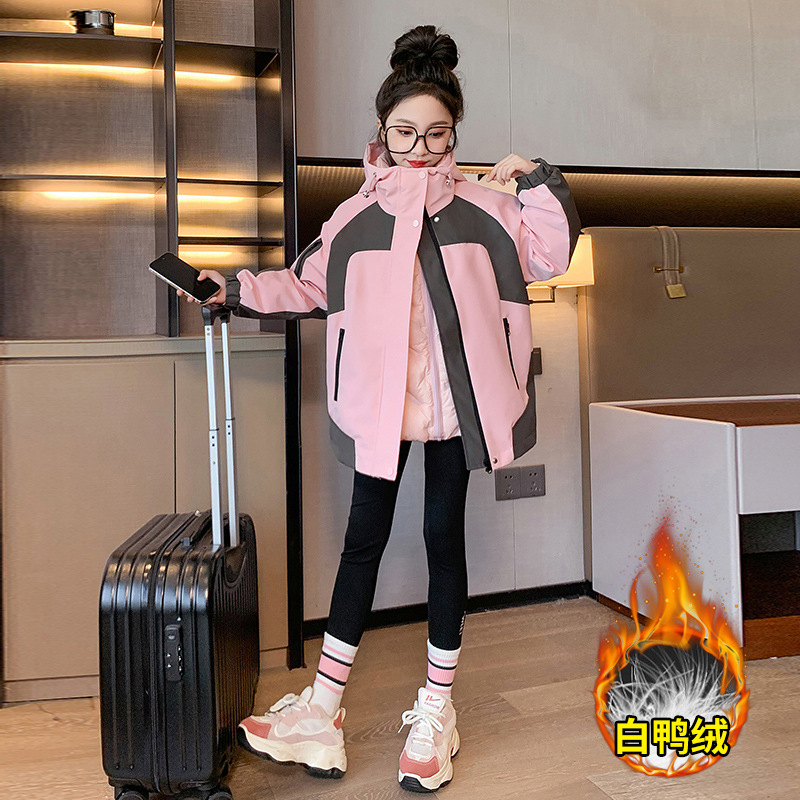여아용 다운 재킷 2025 겨울 신상 아동용 재킷 투피스 세트 다운 내피 화이트 덕다운 보온 재킷
