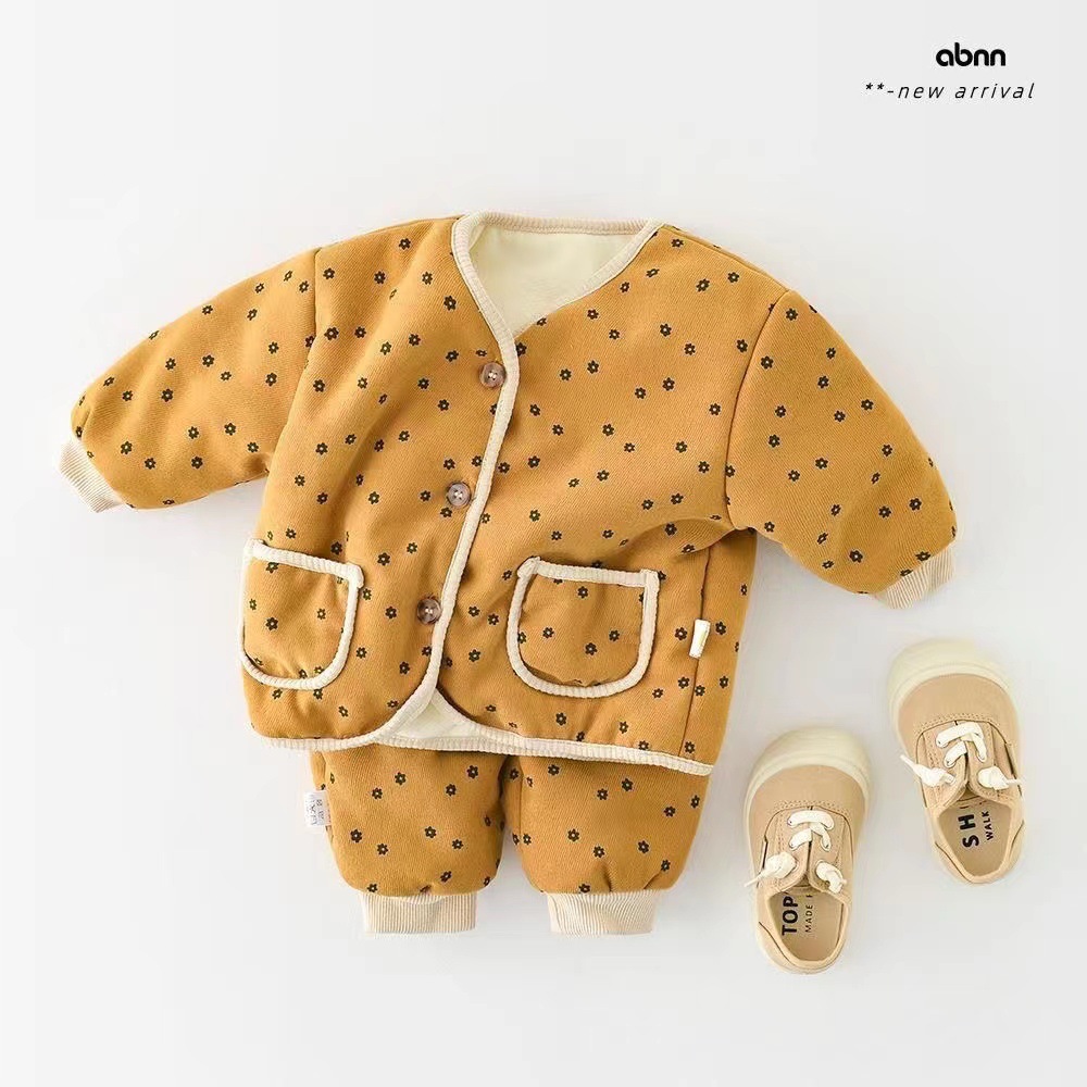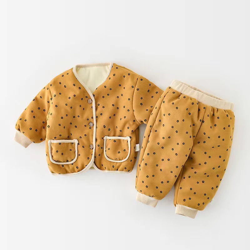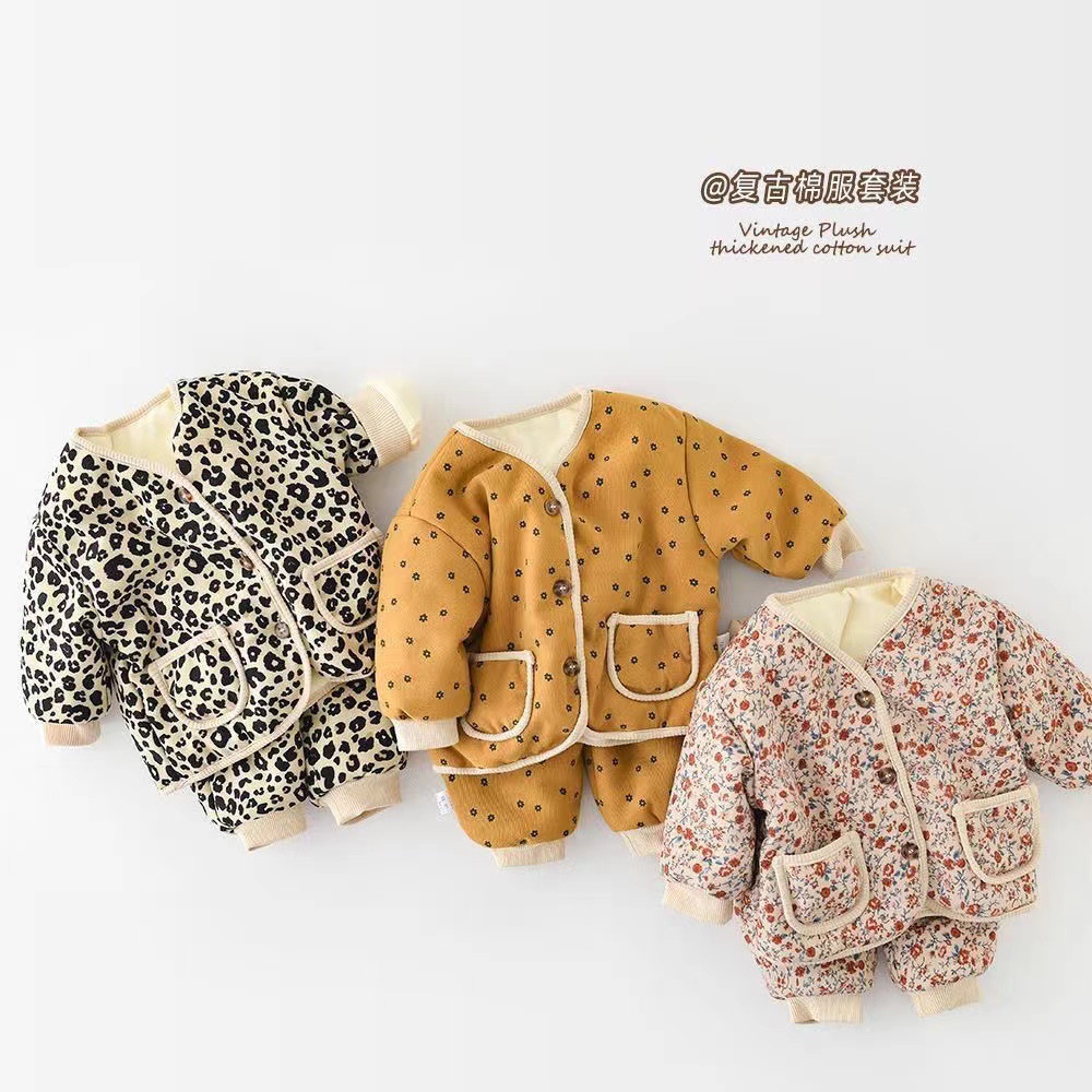남자와 여자의 아기 면 코트 세트 기모 얇은 면 투피스 세트 겨울 패션 웨스턴 스타일 투피스 세트 세트 트렌디스토어 가기
