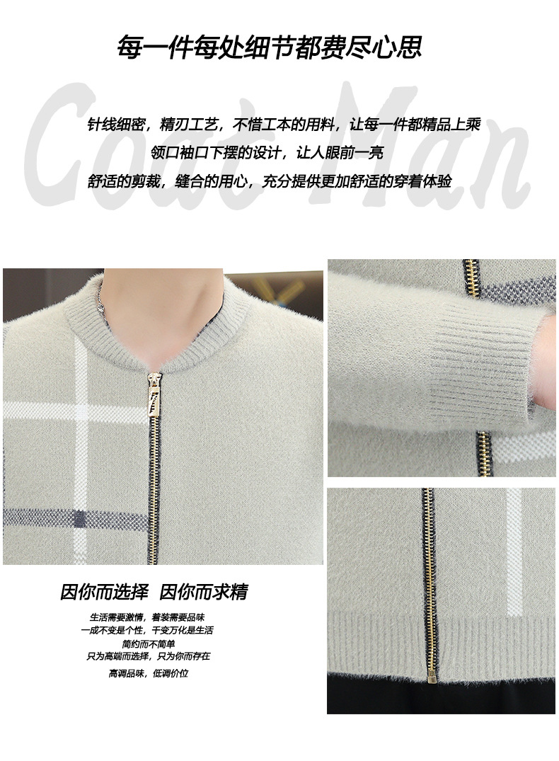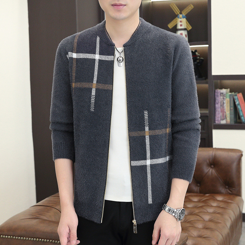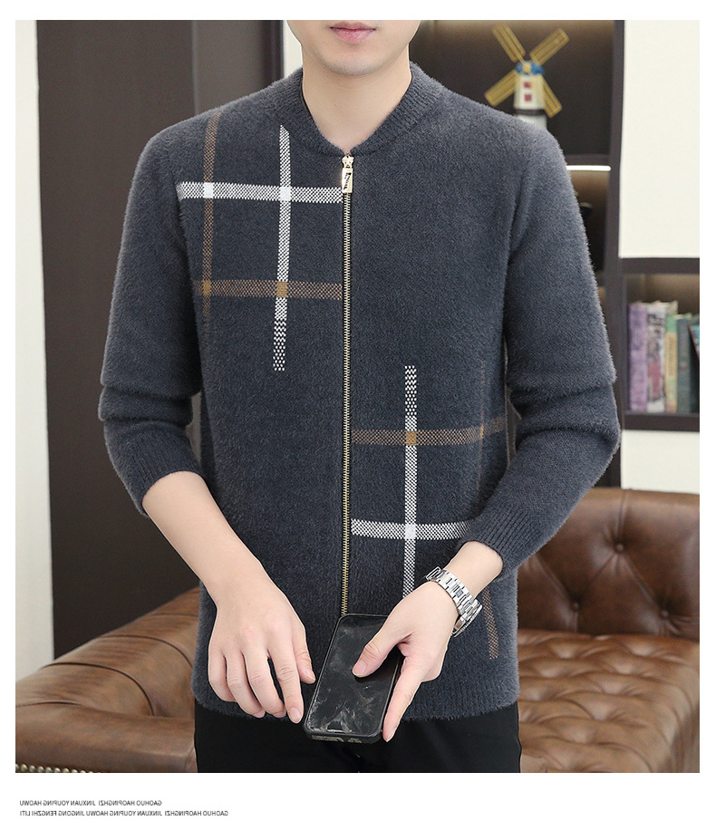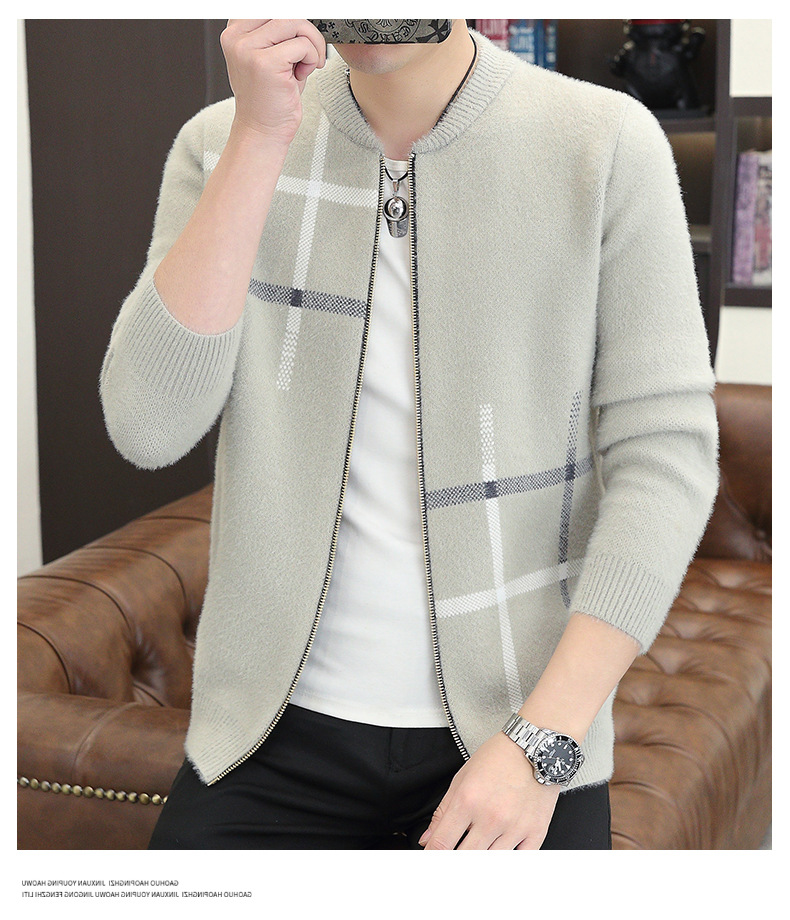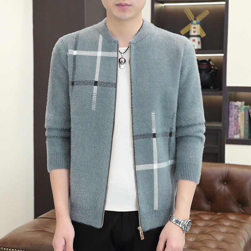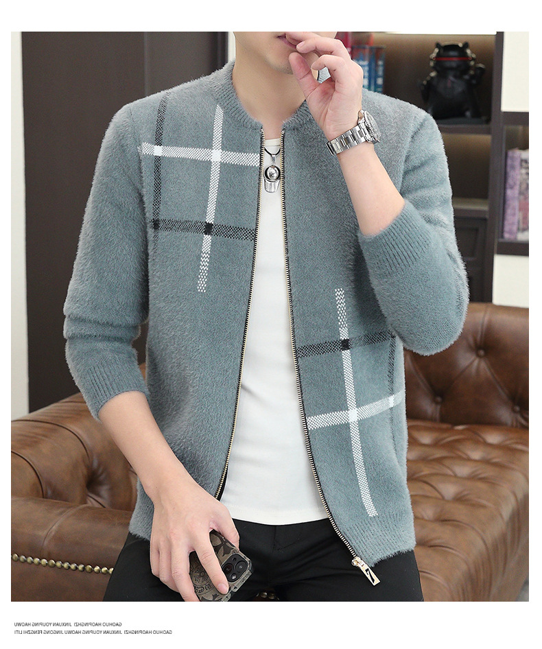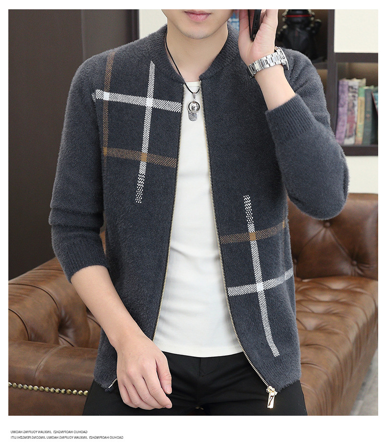 2023 새로운 니트 카디건 남성용 스웨터 모조 밍크 벨벳 캐주얼 야구 칼라 남성용 지퍼 재킷