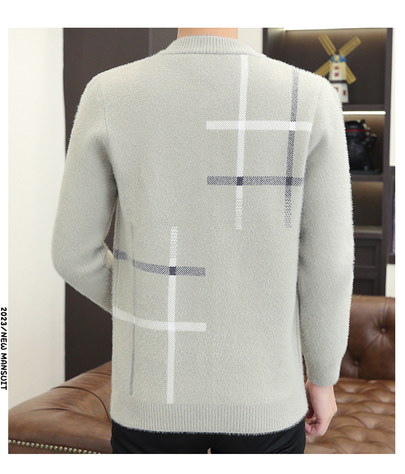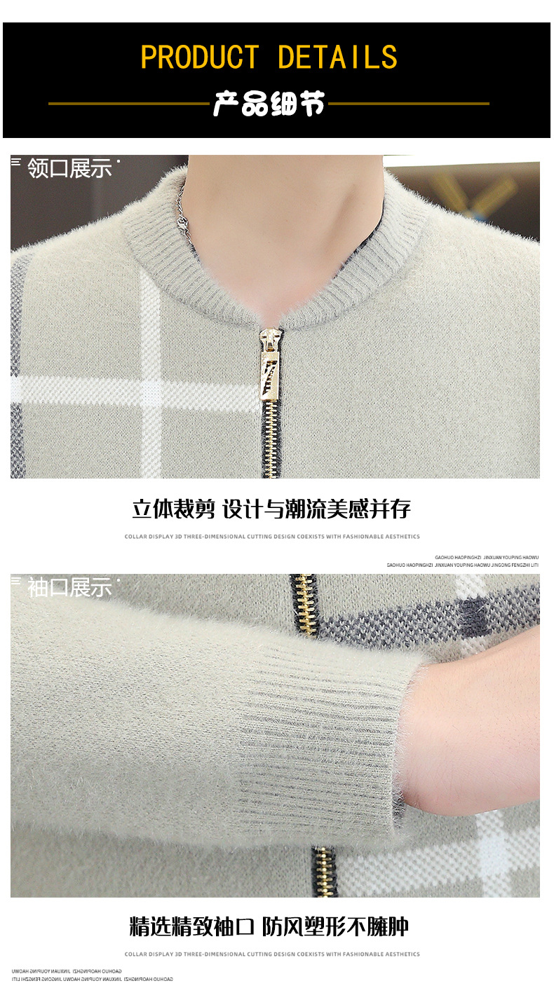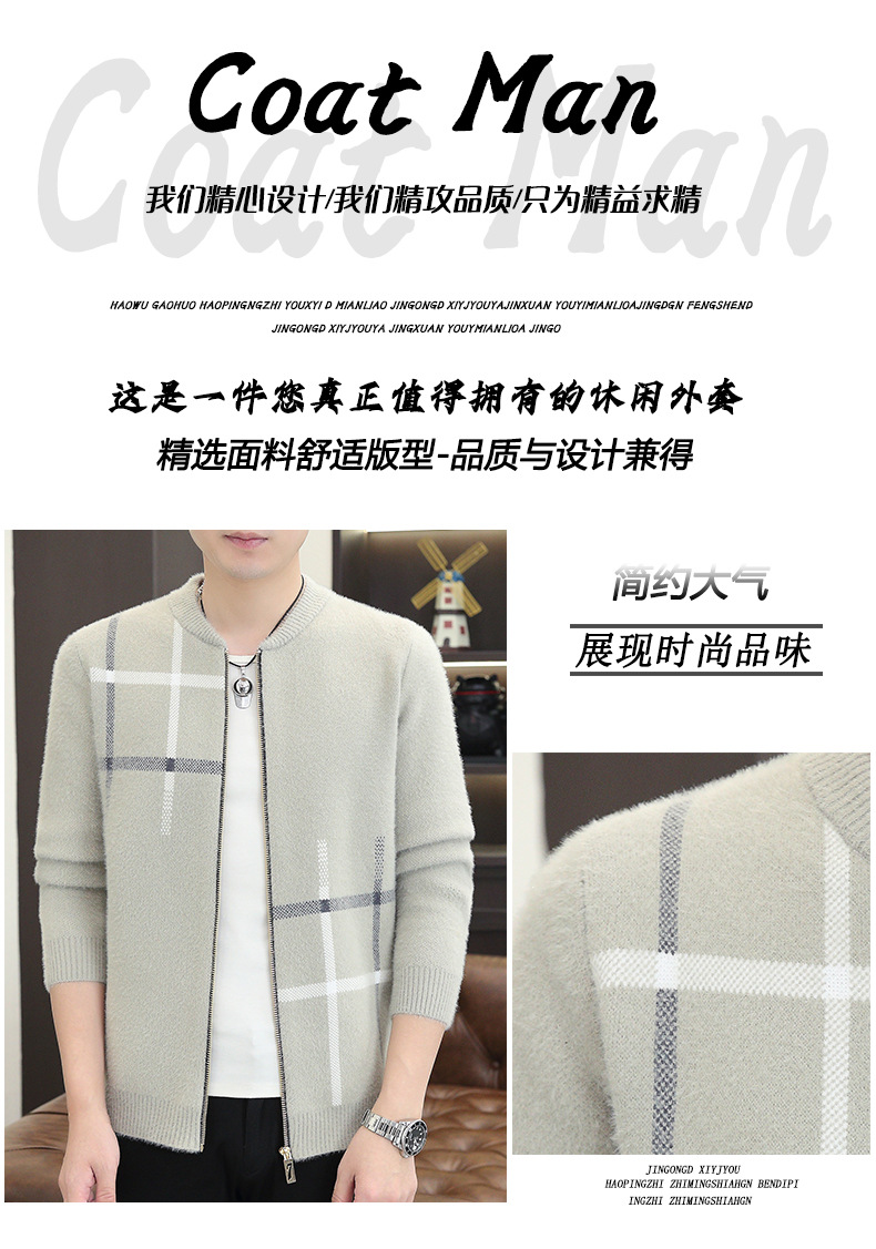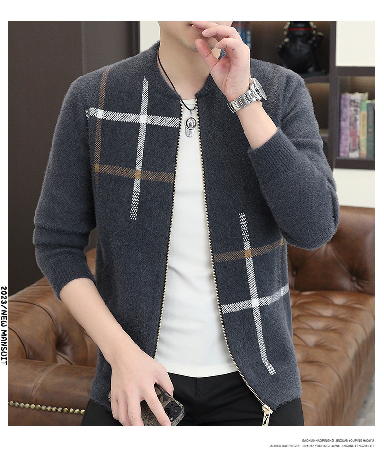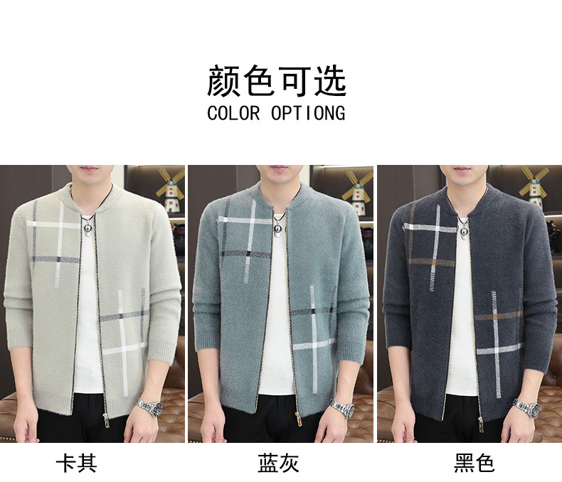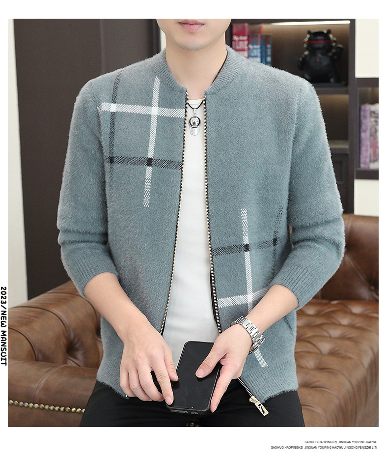 2023 새로운 니트 카디건 남성용 스웨터 모조 밍크 벨벳 캐주얼 야구 칼라 남성용 지퍼 재킷스토어 가기