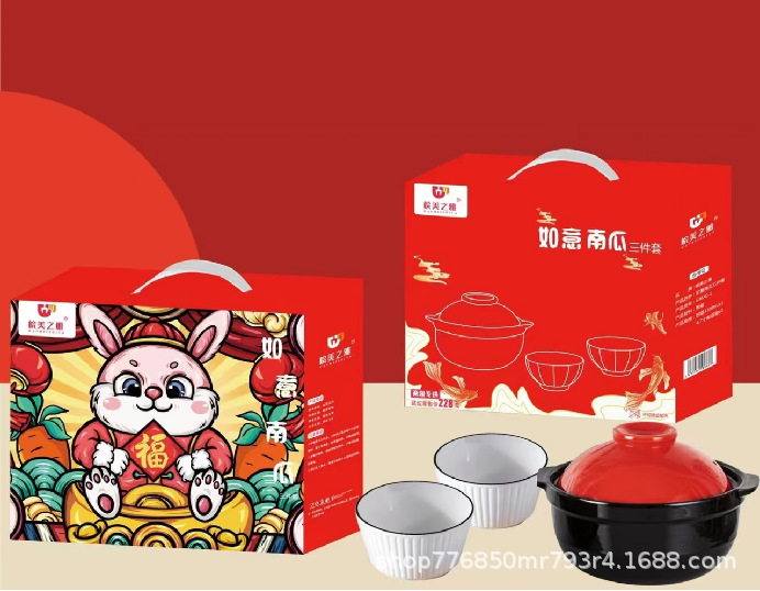 Wanmei 우아한 Ruyi 호박 캐서롤 세라믹 그릇 청자 세트 3 피스 세트 패션 가정용 냄비 그릇 로고