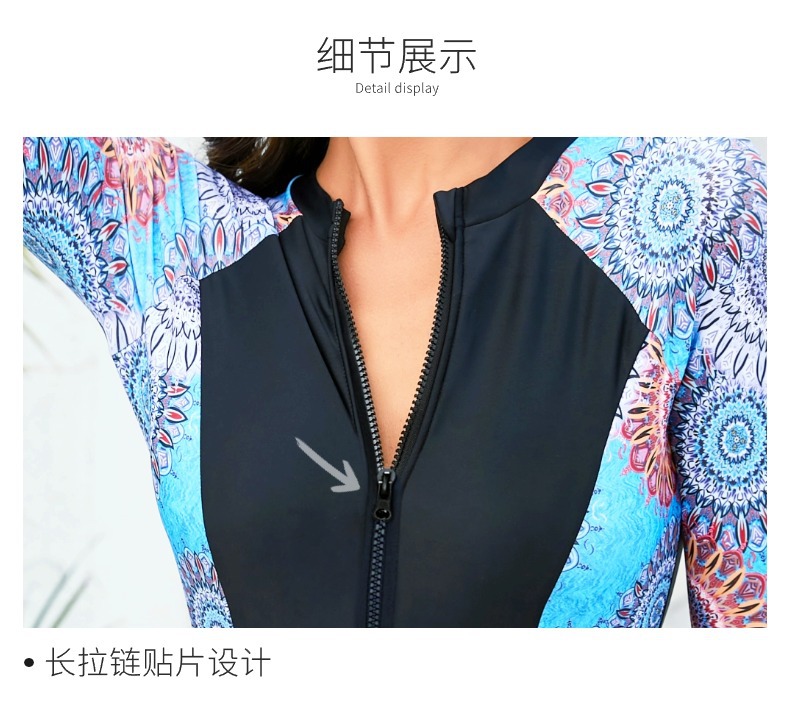 유럽과 미국 대외 무역 서핑 세트 2024 아마존 수영 삼각형 원피스 다이빙 세트 긴 소매 인쇄 지퍼 수영복 여성용스토어 가기