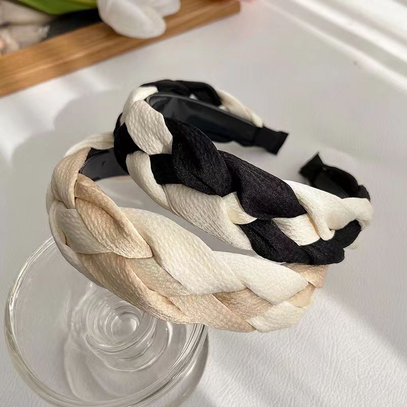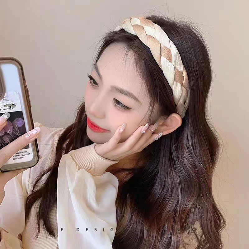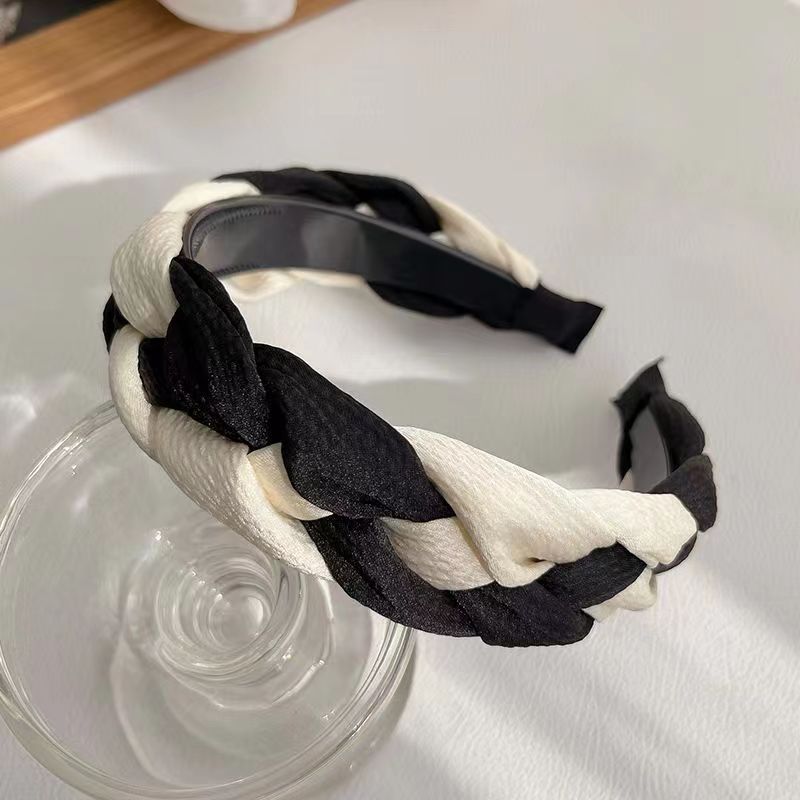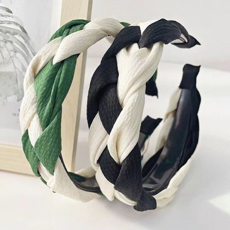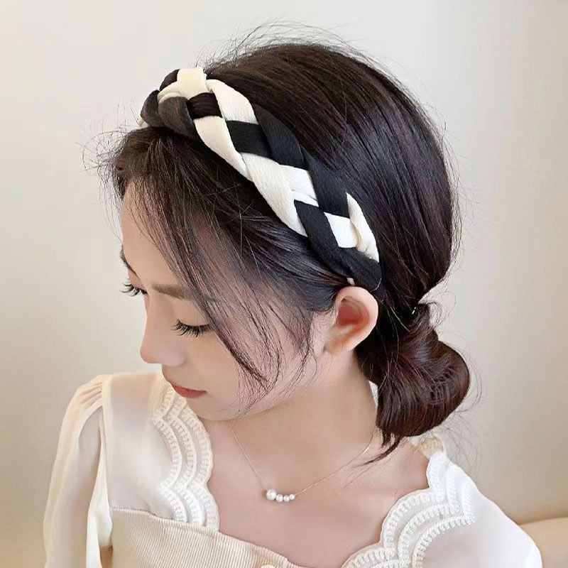 Liu Yifei 같은 스타일 헤어 후프 더블 컬러 꼰 헤어 후프 하이 패션 Houndstooth 머리띠 하이 두개골 탑 와이드 사이드 헤어 카드스토어 가기