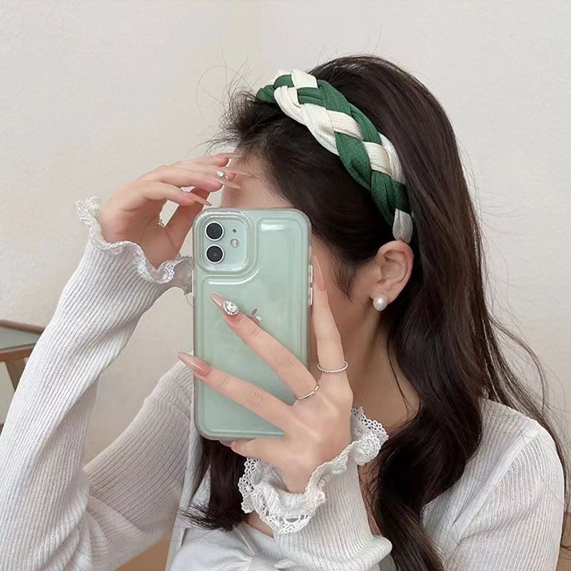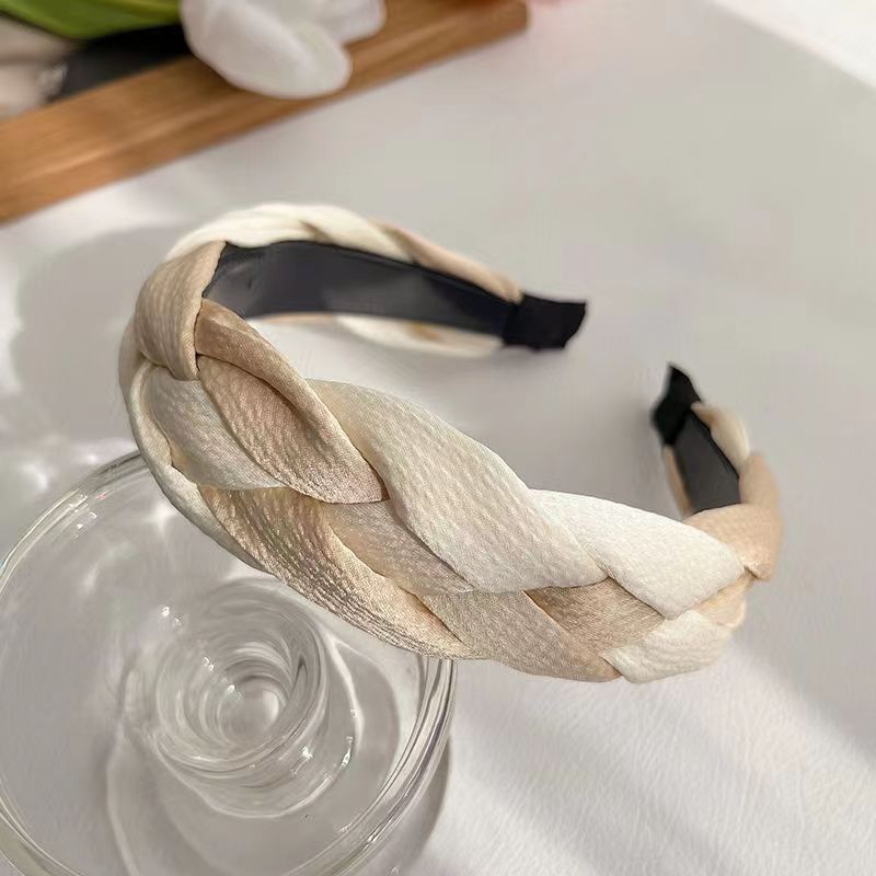 Liu Yifei 같은 스타일 헤어 후프 더블 컬러 꼰 헤어 후프 하이 패션 Houndstooth 머리띠 하이 두개골 탑 와이드 사이드 헤어 카드