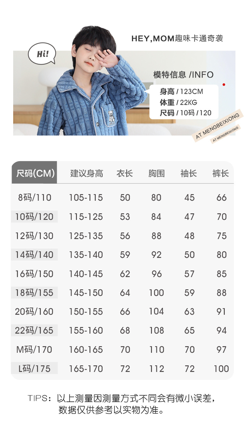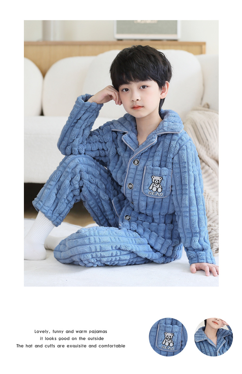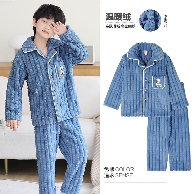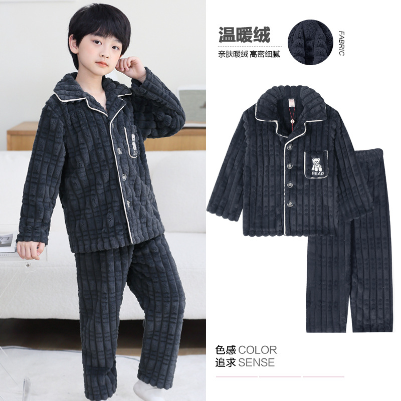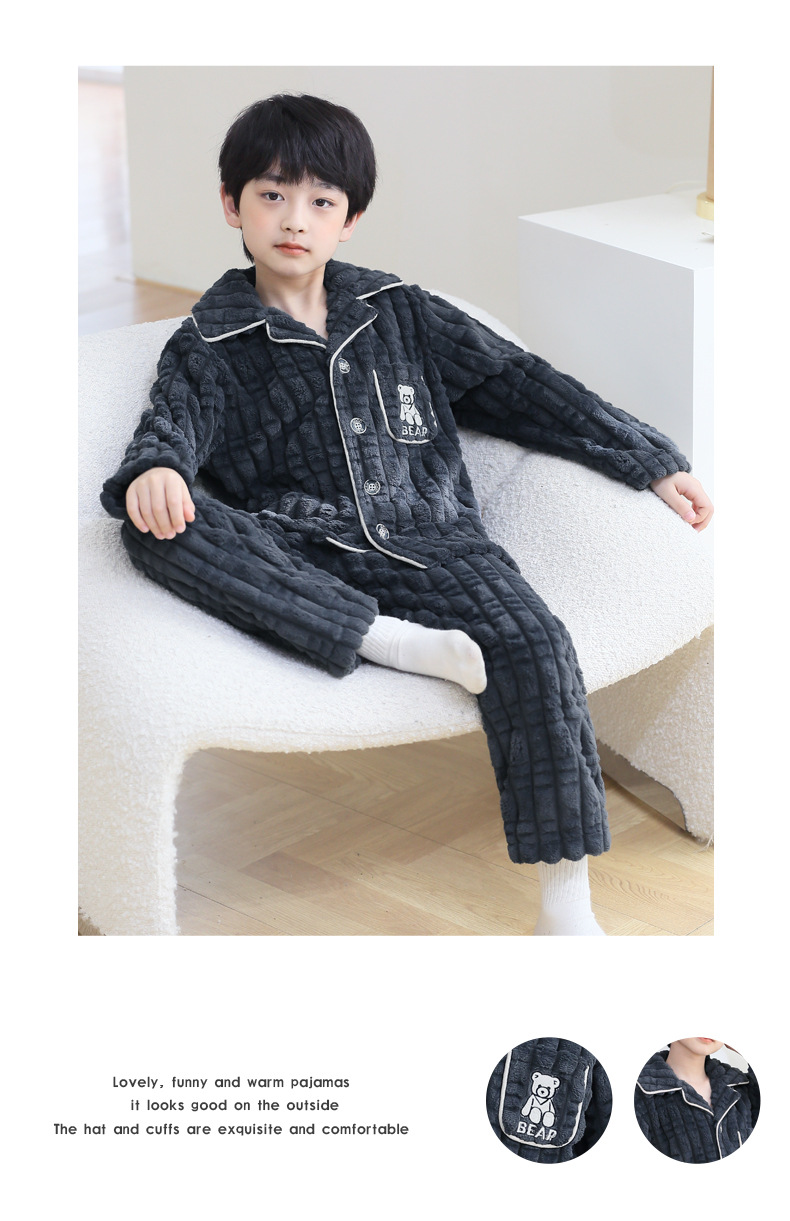 어린이 잠옷 소년 가을과 겨울 산호 양털 두꺼운 어린 소년 플란넬 가정 옷 2023 New