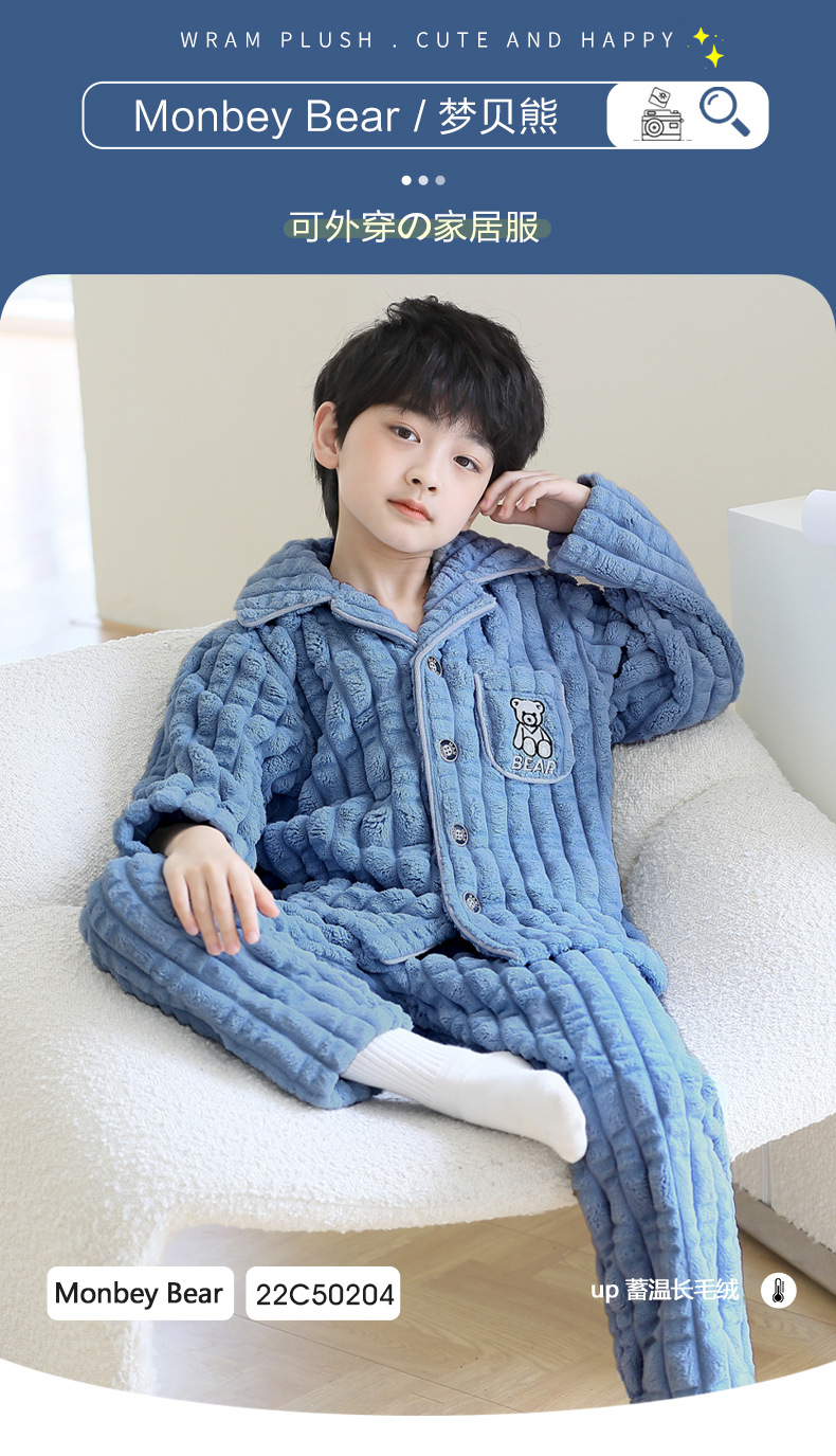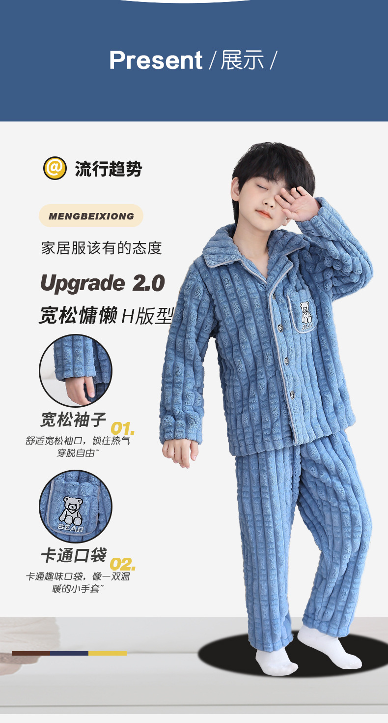 어린이 잠옷 소년 가을과 겨울 산호 양털 두꺼운 어린 소년 플란넬 가정 옷 2023 New스토어 가기