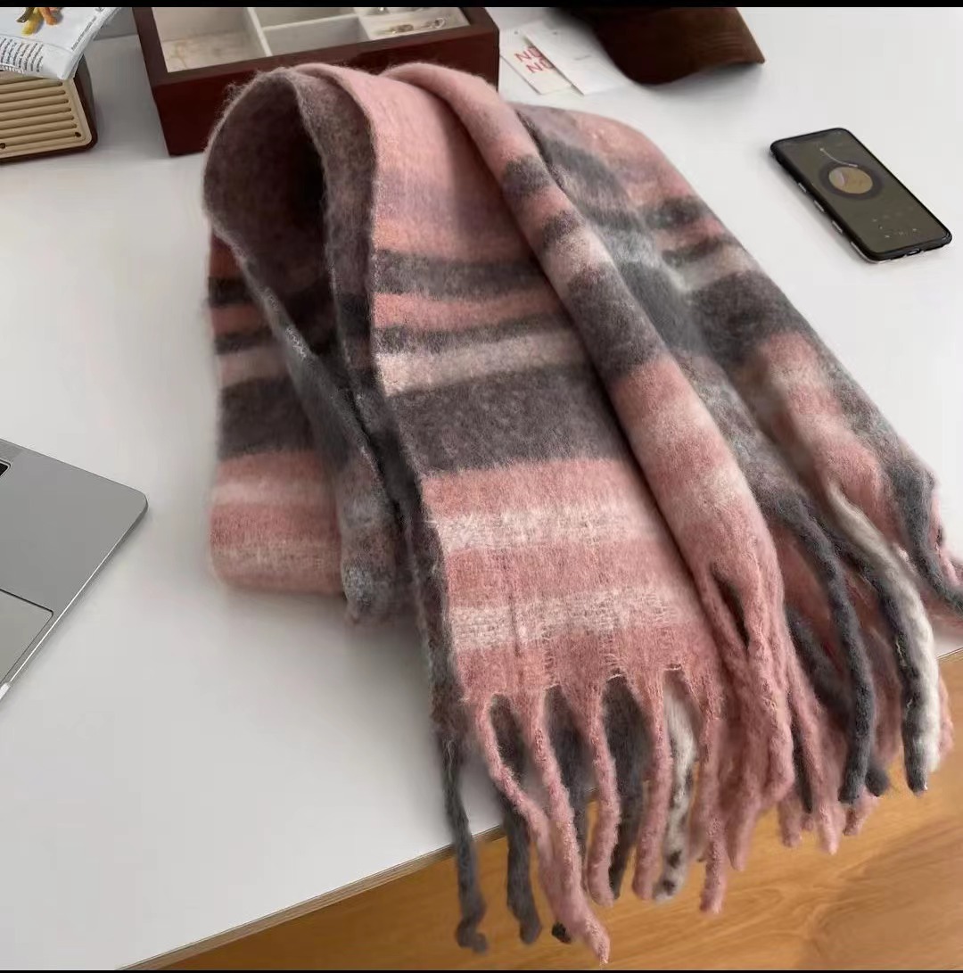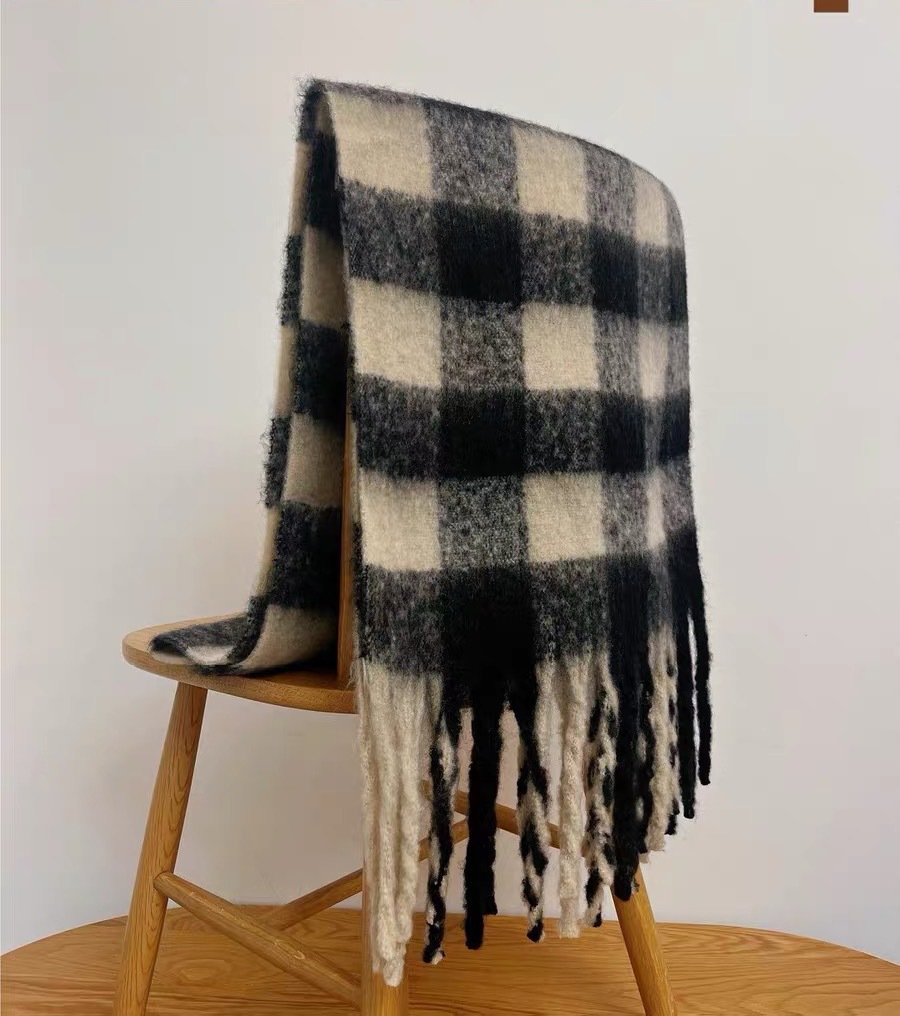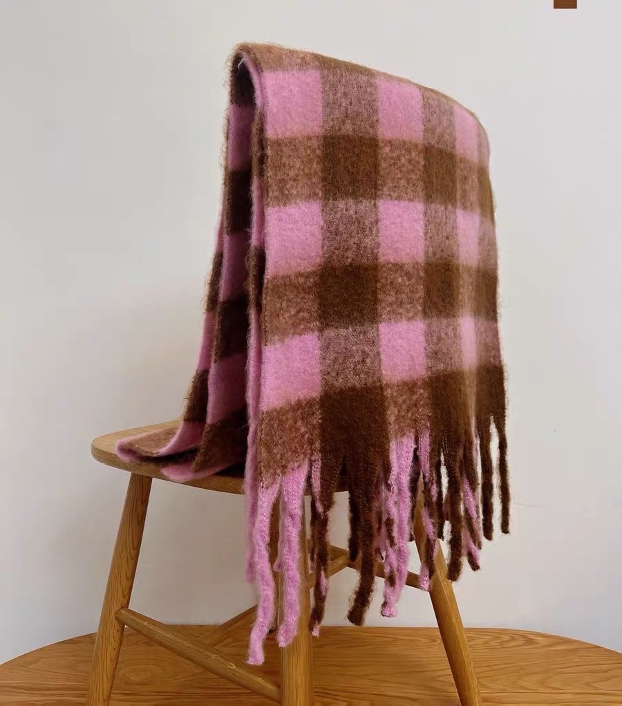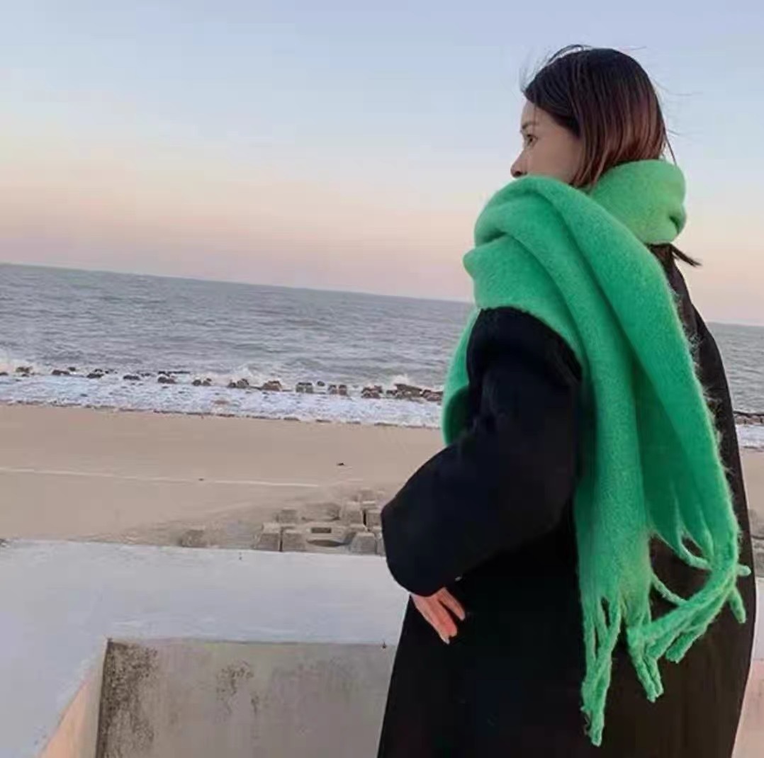2025 새로운 부드러운 밀랍 격자 무늬 솔리드 컬러 스카프 여성 겨울 두꺼운 모조 캐시미어 목도리 한국어 버전 따뜻한 스카프 다목적스토어 가기
