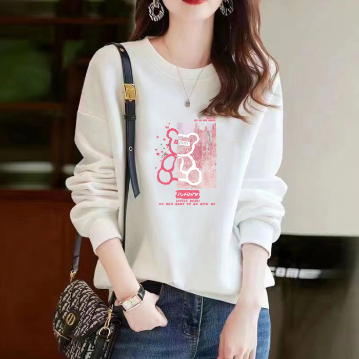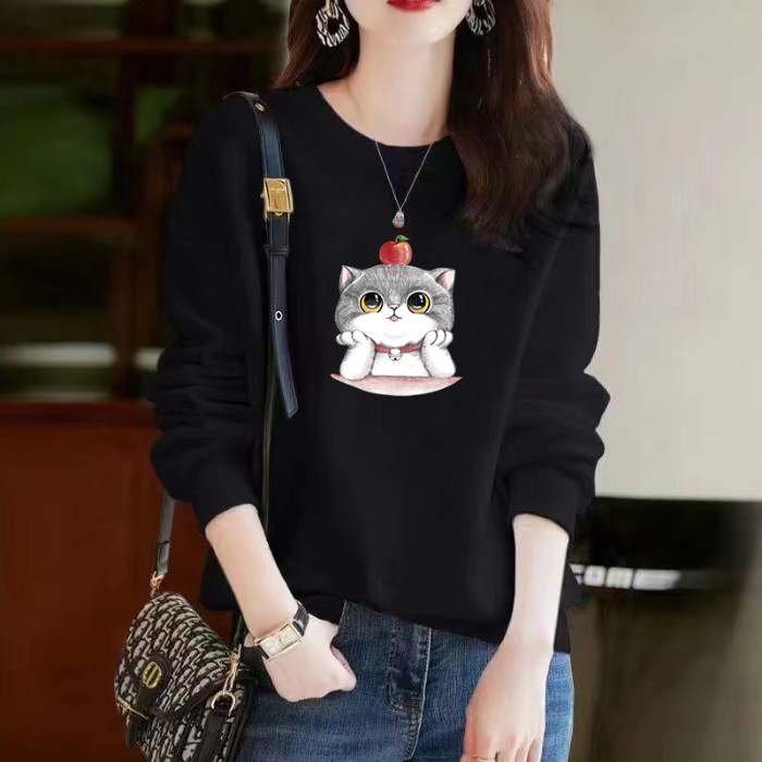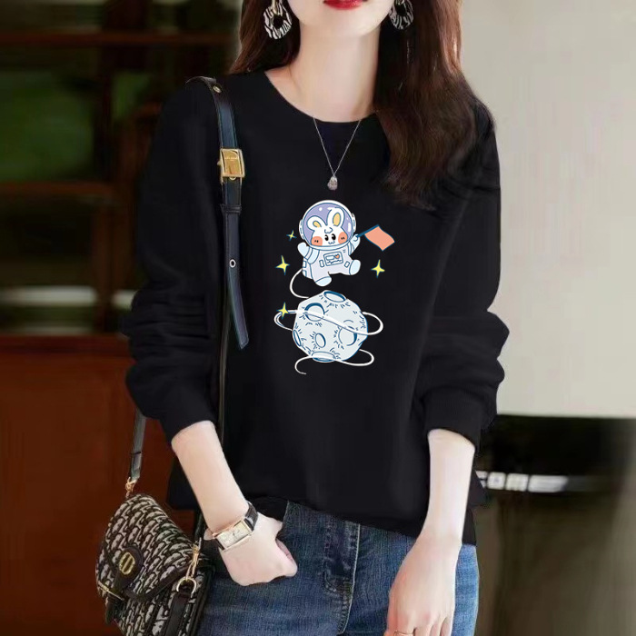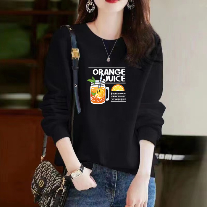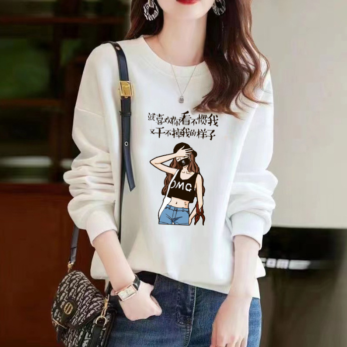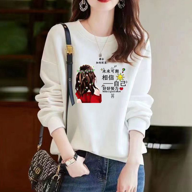 라운드 넥 봄, 가을 대형 스웨트 셔츠 여성 루즈 바닥 셔츠 다목적 새로운 스타일 2025 서양식 중간 길이 긴팔 탑 트렌디