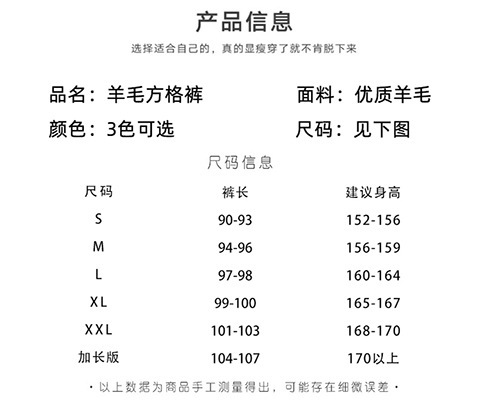 100% 울 두꺼운 체크 무늬 니트 와이드 팬츠 여성용 키 큰 겉옷 가을과 겨울 스트레이트 울 팬츠 포켓스토어 가기