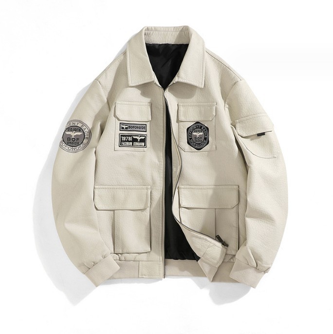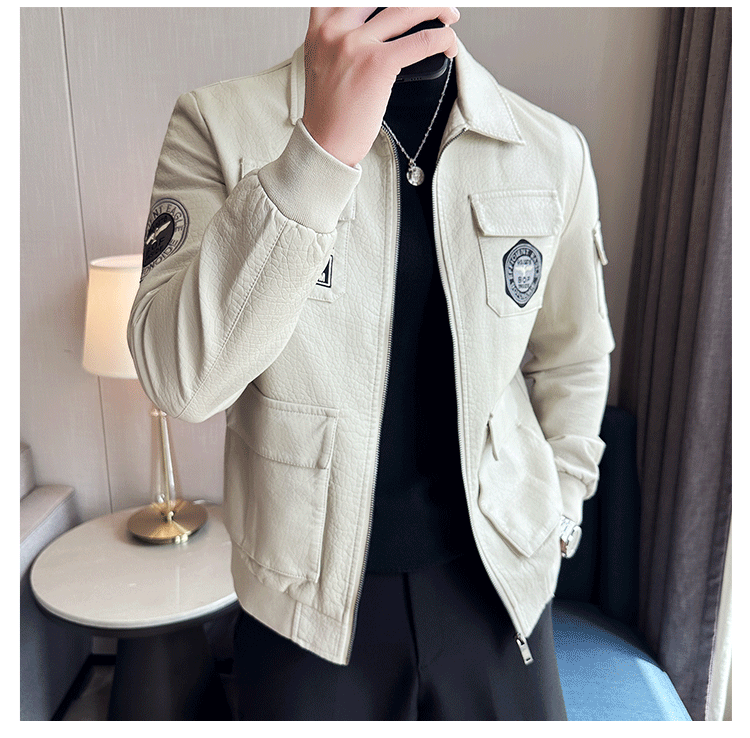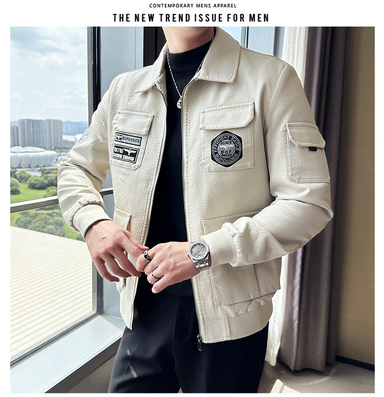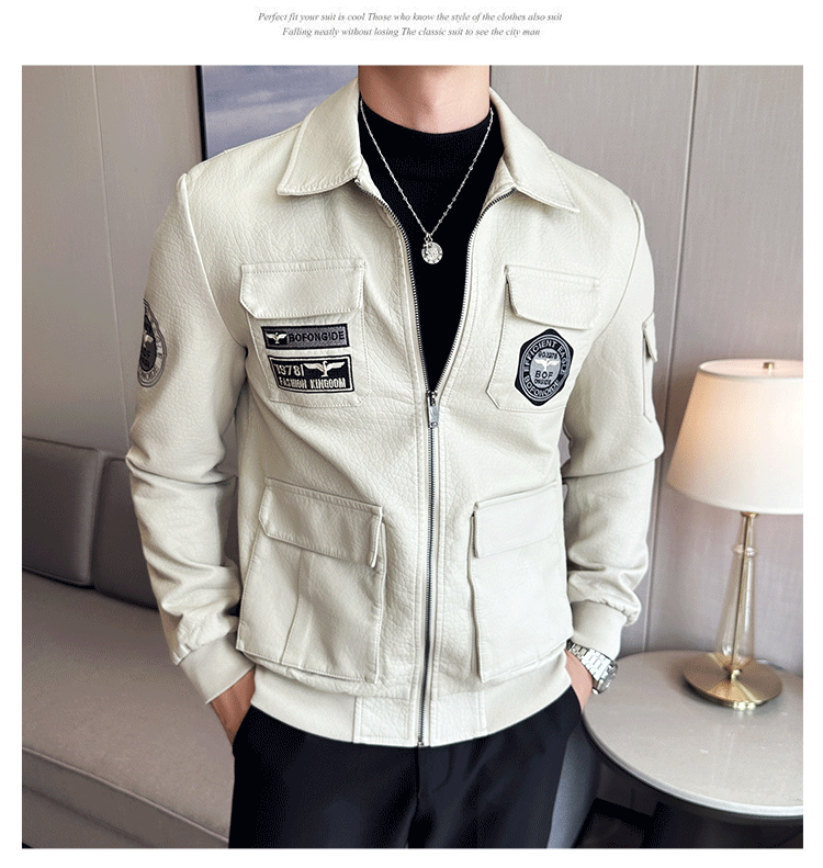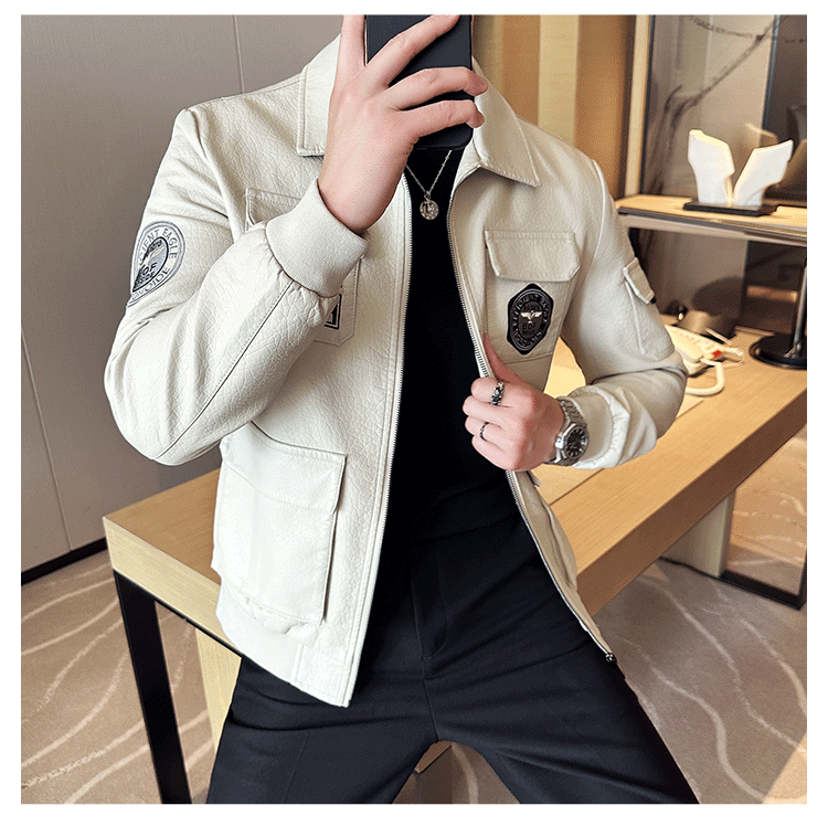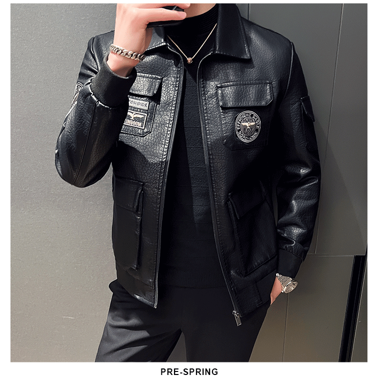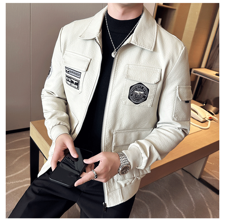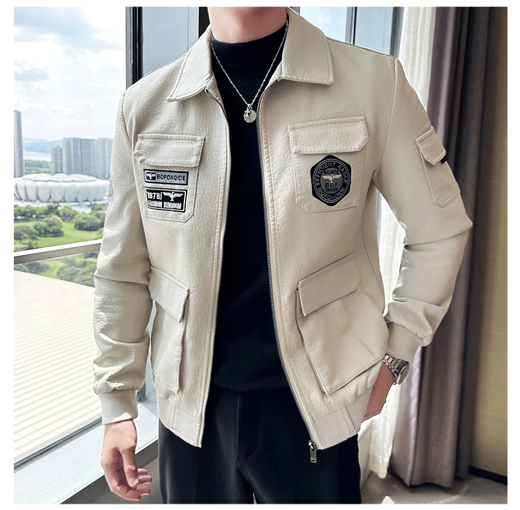 남자의 가죽 자켓 2023 가을 새로운 남자의 가죽 플라잉 자켓 오토바이 자켓 청소년 자수 트렌디 한 남자의 가죽 자켓스토어 가기