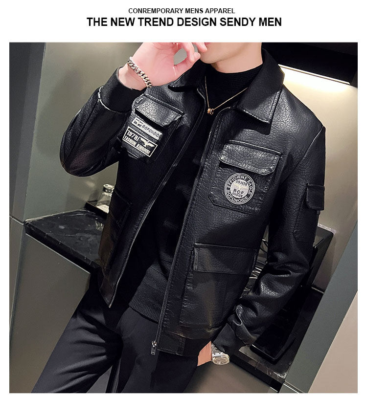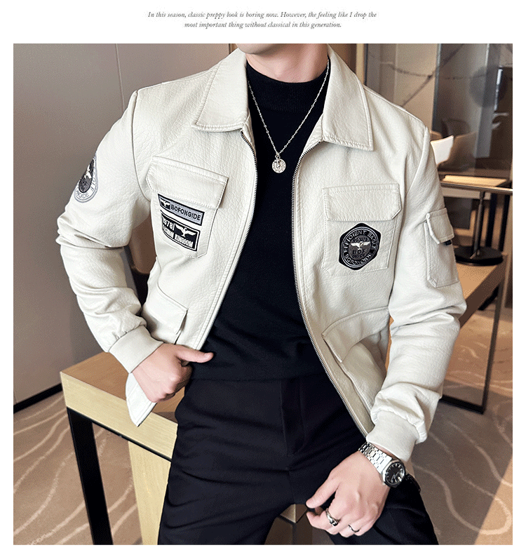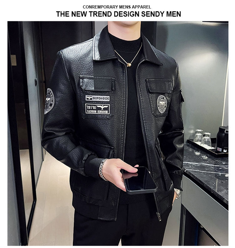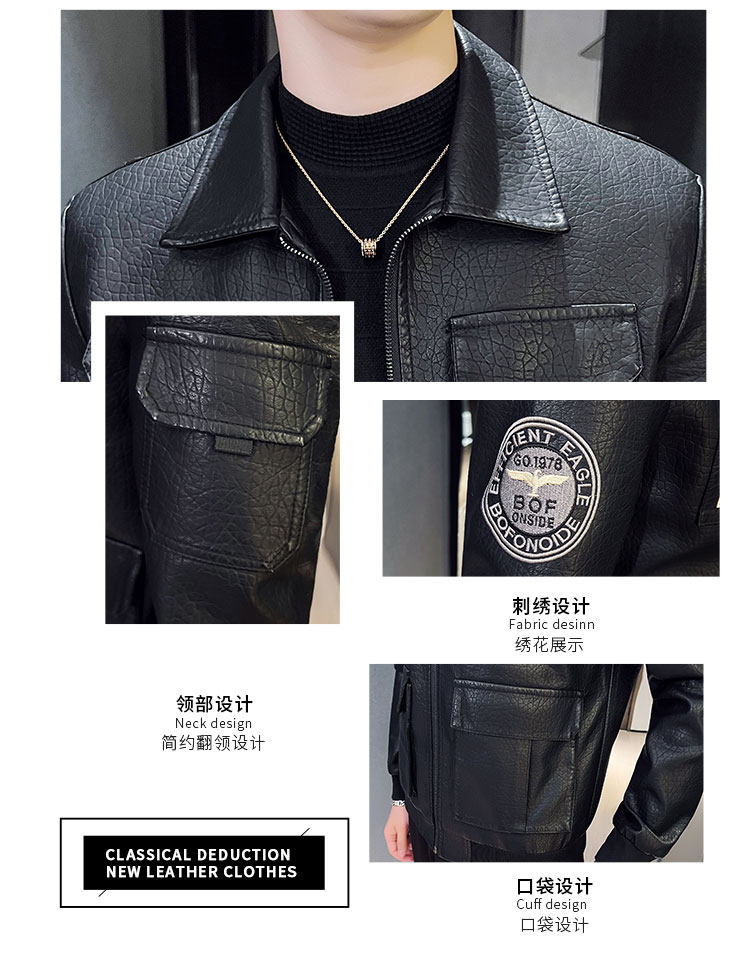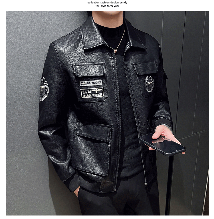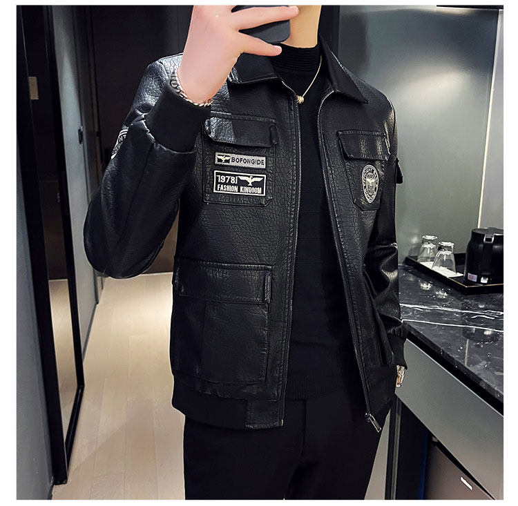남자의 가죽 자켓 2023 가을 새로운 남자의 가죽 플라잉 자켓 오토바이 자켓 청소년 자수 트렌디 한 남자의 가죽 자켓