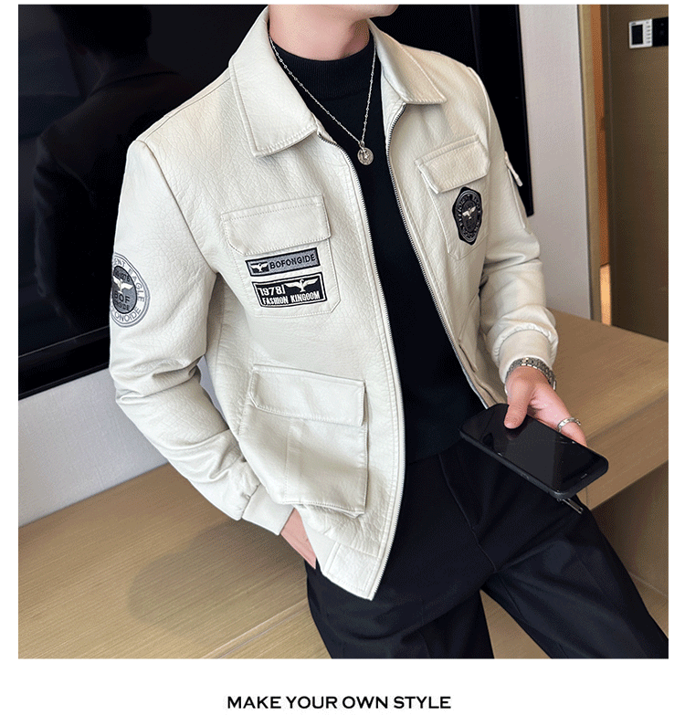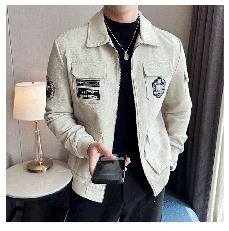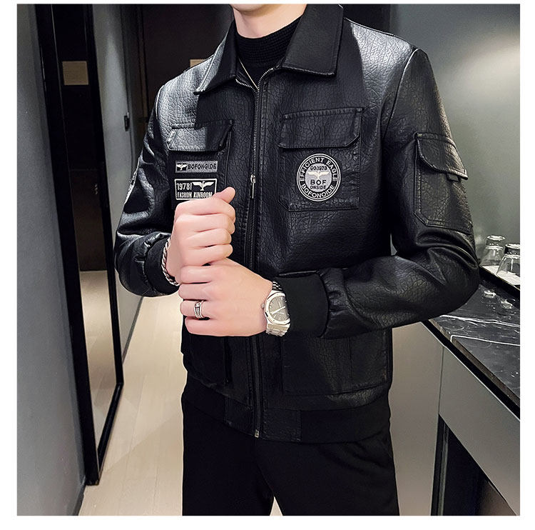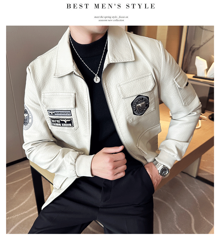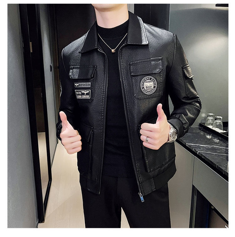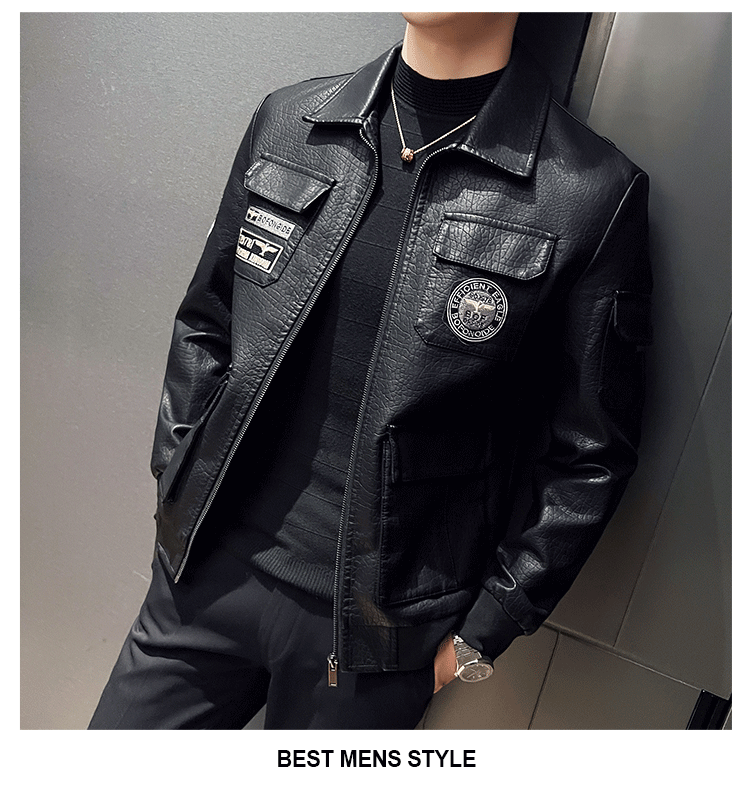 남자의 가죽 자켓 2023 가을 새로운 남자의 가죽 플라잉 자켓 오토바이 자켓 청소년 자수 트렌디 한 남자의 가죽 자켓