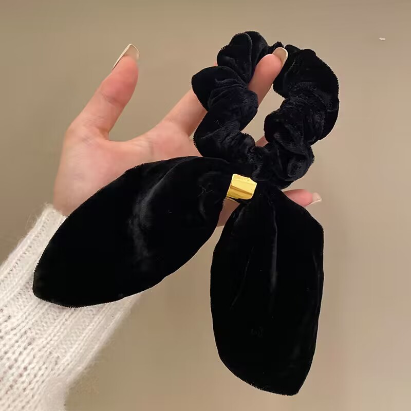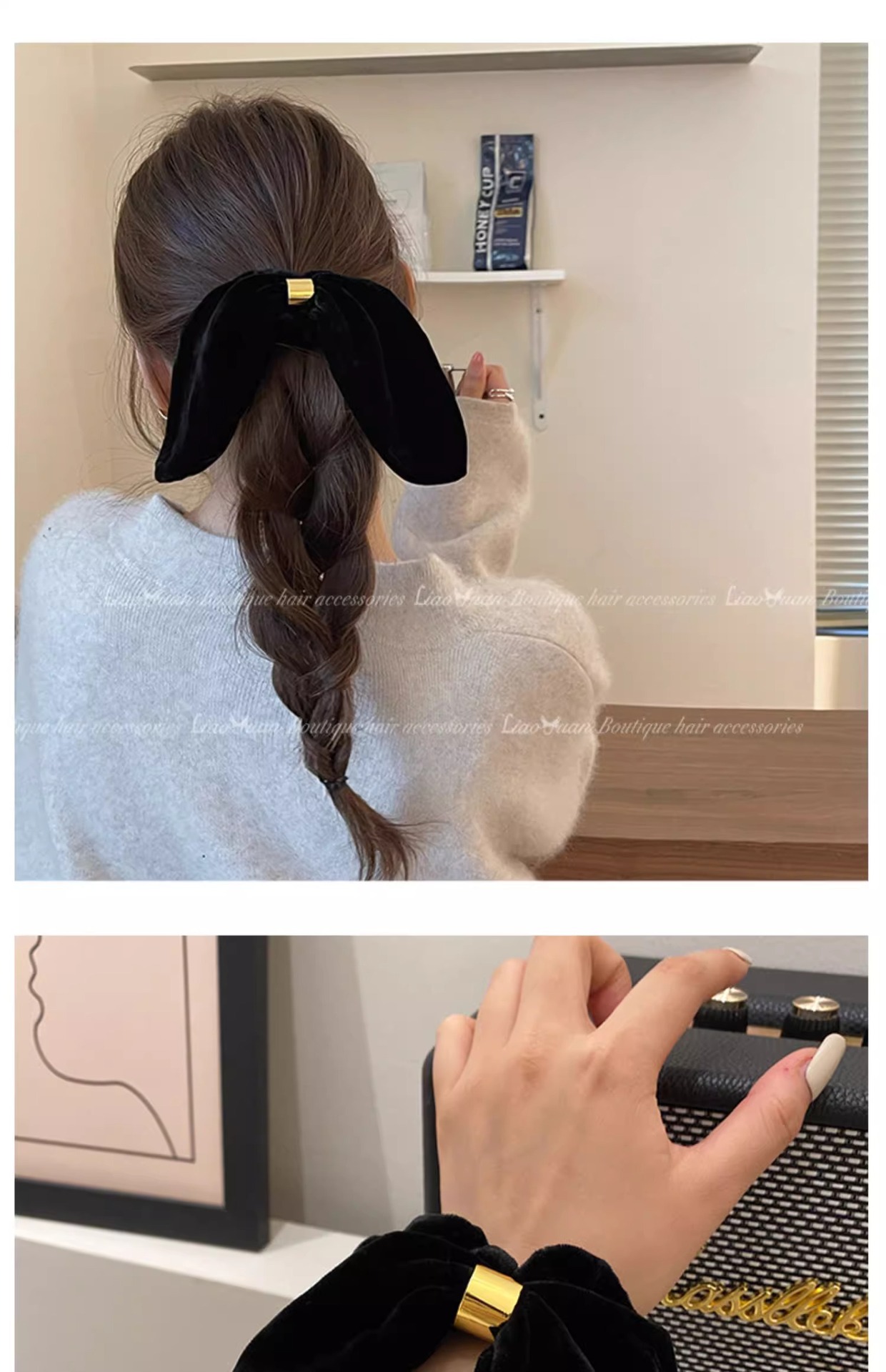 우아한 금속 장식 가을과 겨울 검은 나비 헤어 링 고급 헤어 로프 2023 새로운 고무 밴드 여성용 넥타이