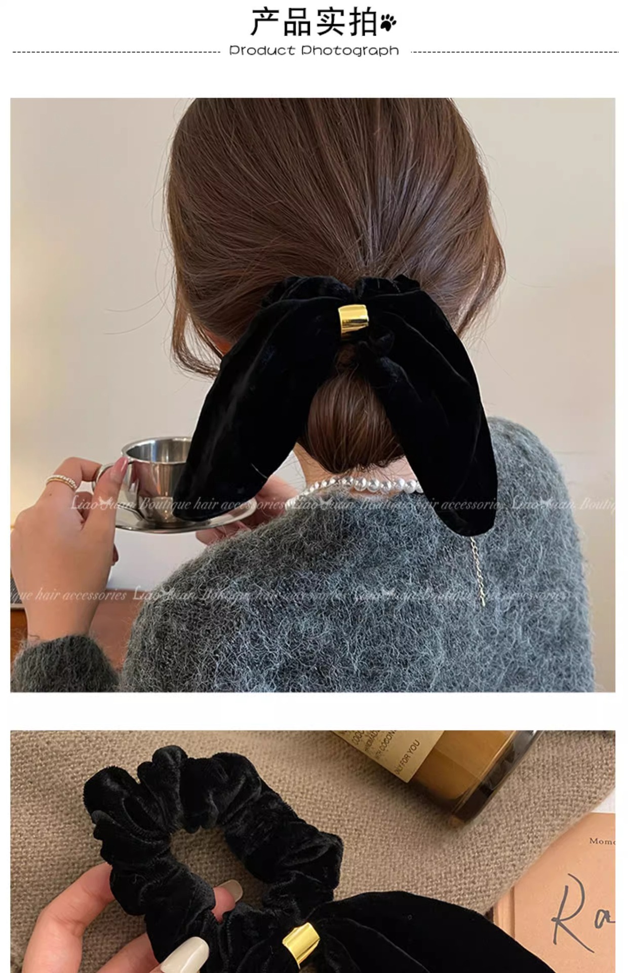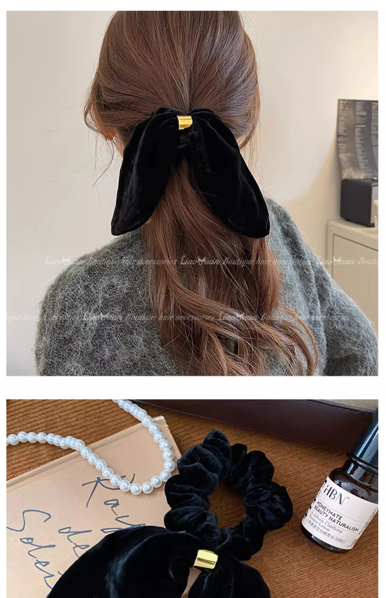우아한 금속 장식 가을과 겨울 검은 나비 헤어 링 고급 헤어 로프 2023 새로운 고무 밴드 여성용 넥타이스토어 가기