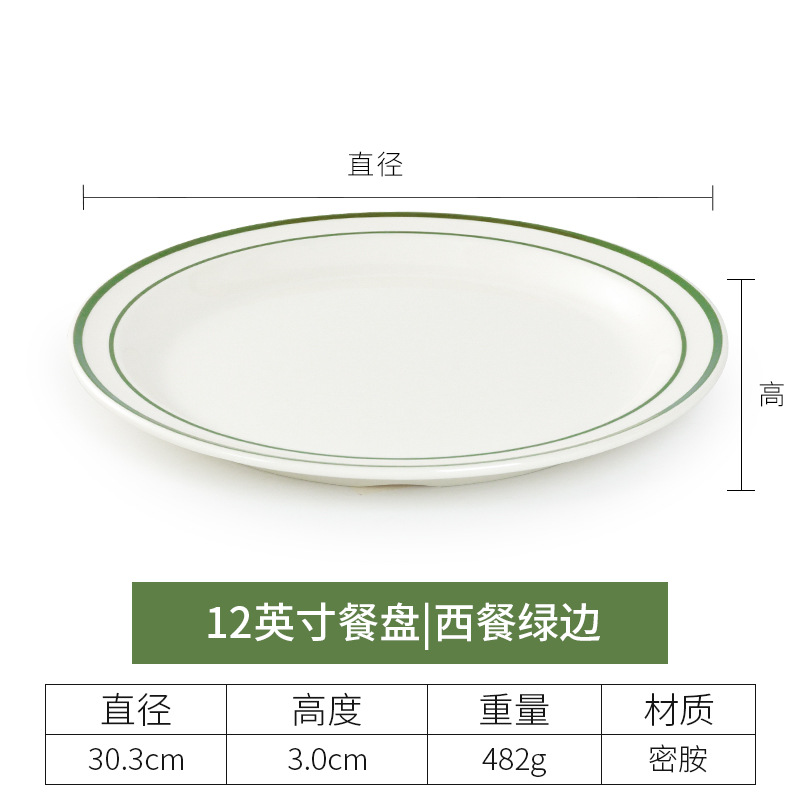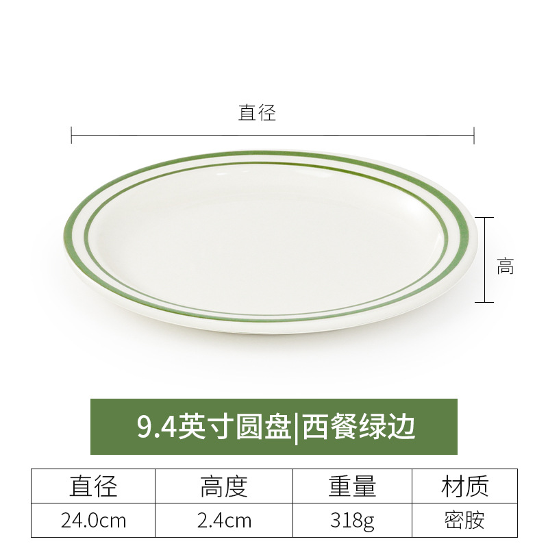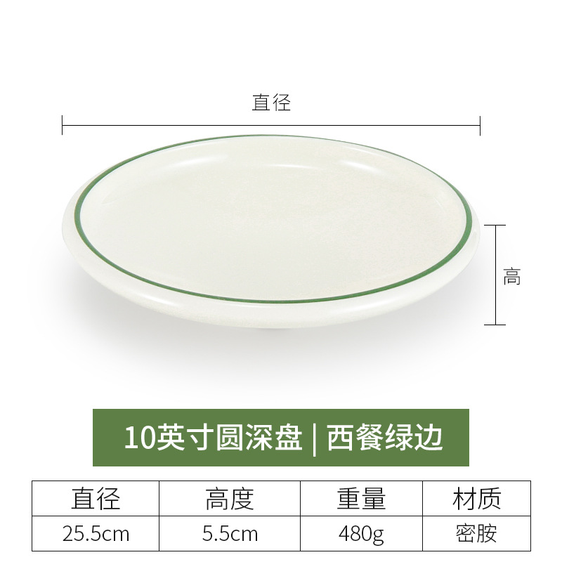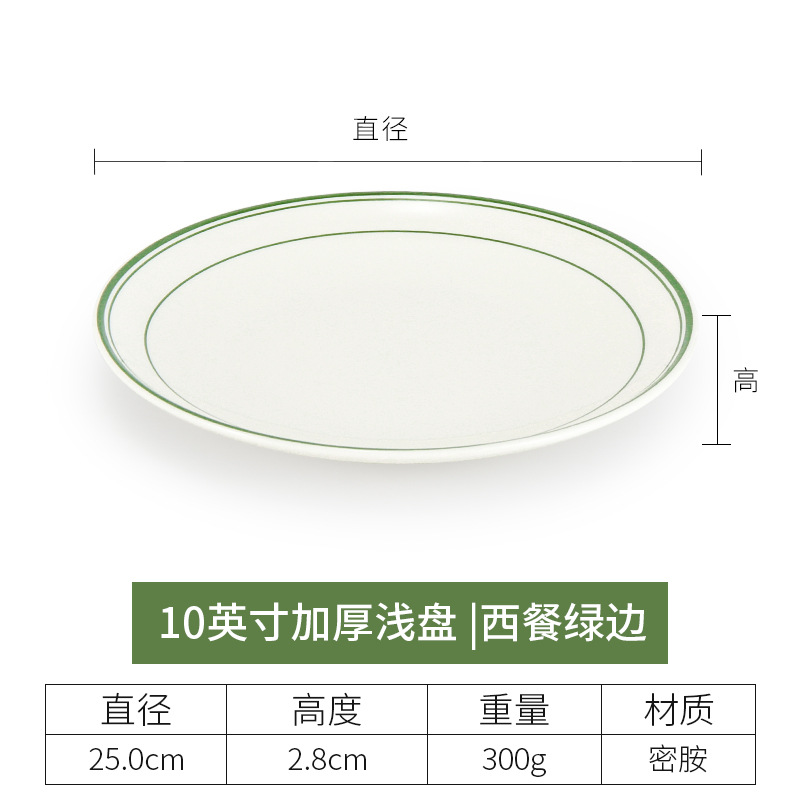 • 10 인치 두꺼운 얕은 접시 (녹색 가장자리가 있는 서양 음식)