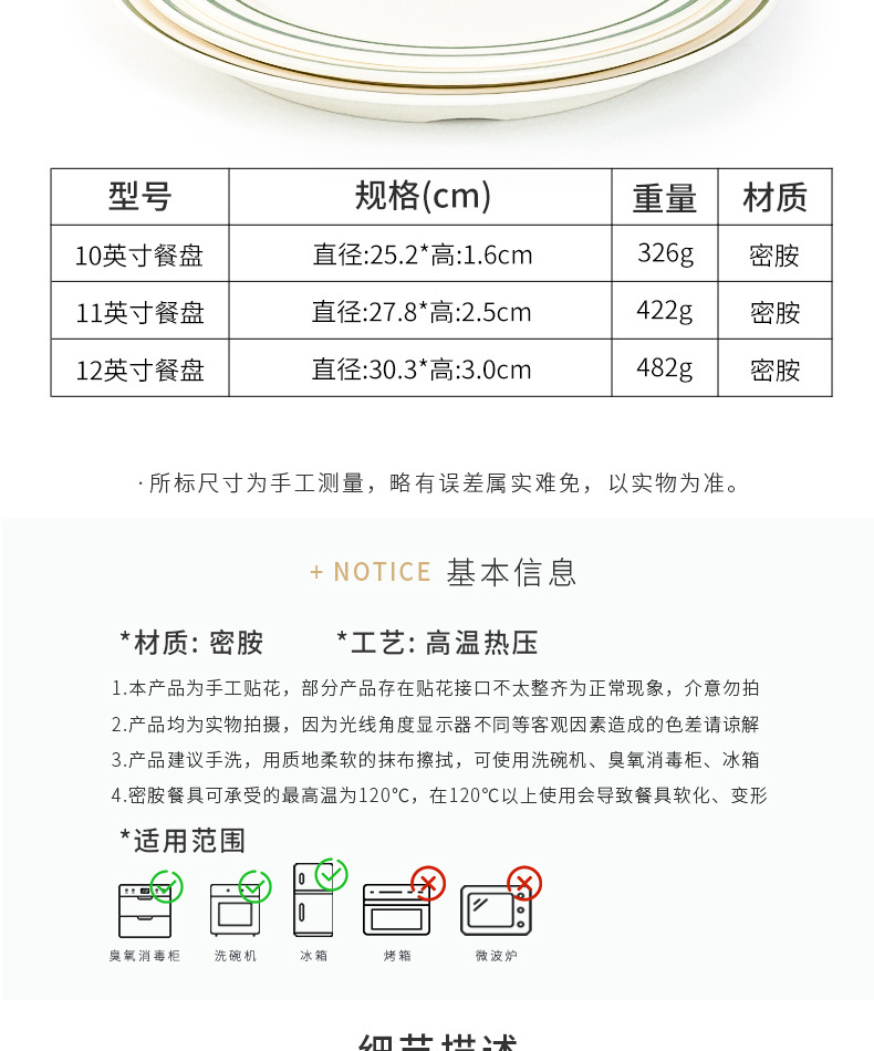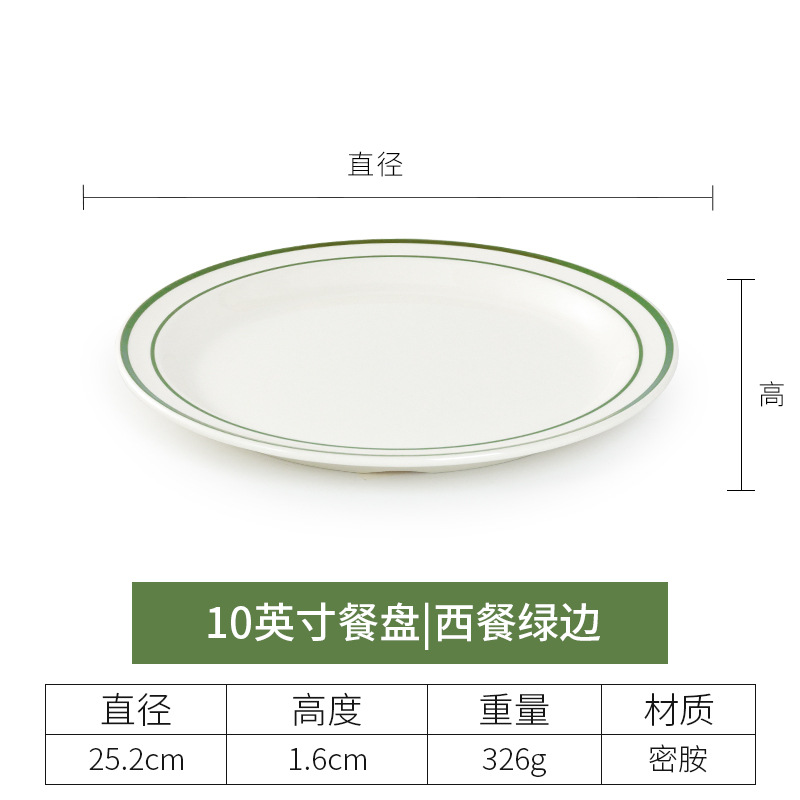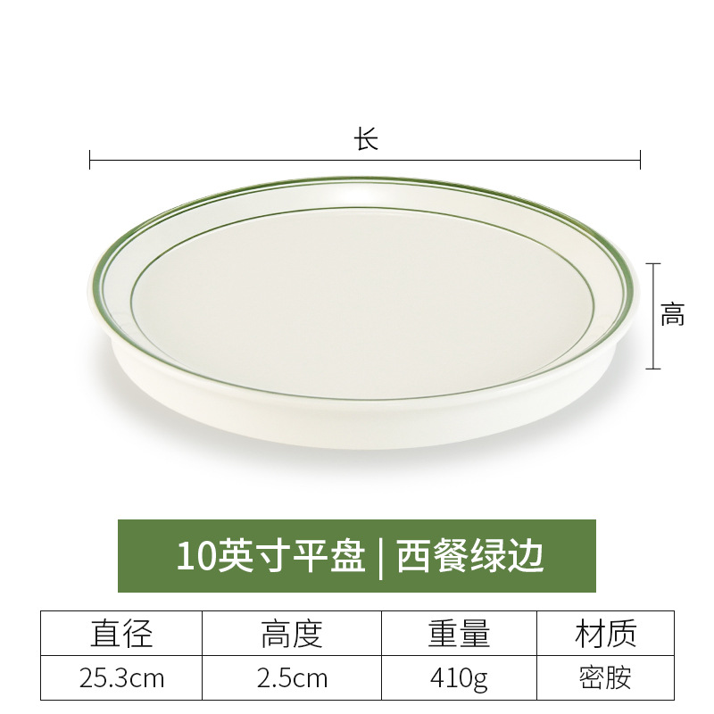 • 10 "플랫 플레이트 (녹색 가장자리가있는 서양 음식)