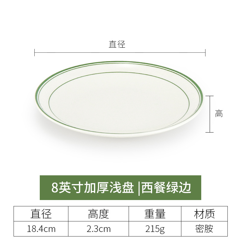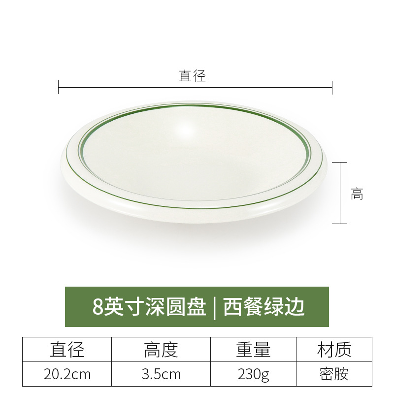 • 8 인치 두꺼운 얕은 접시 (녹색 가장자리가있는 서양 음식)