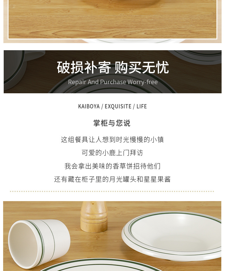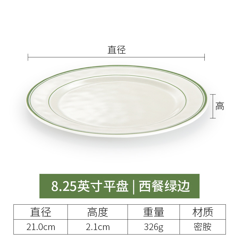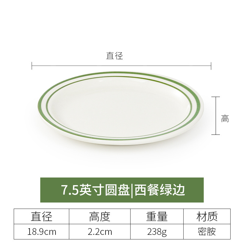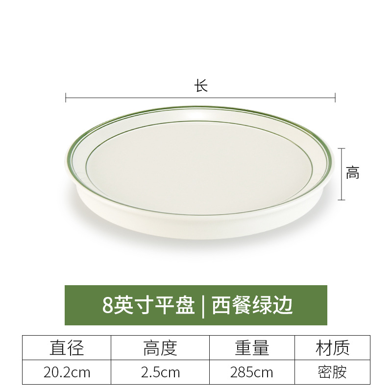 • 8 인치 두께의 평평한 접시 (녹색 가장자리가있는 서양 음식)