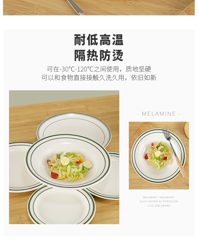 멜라민 플레이트 도자기풍 레스토랑 원형 접시 플라스틱 패스트 푸드 레스토랑 호텔 볶음 접시 깊은 접시 스프 접시 상업스토어 가기