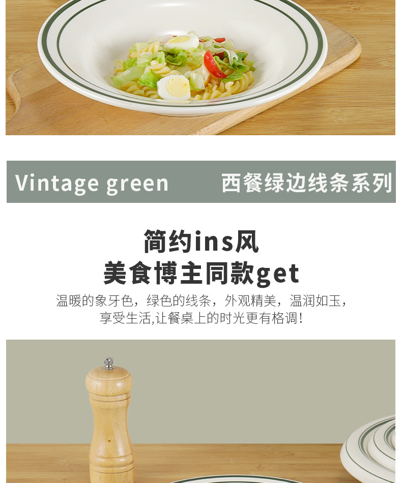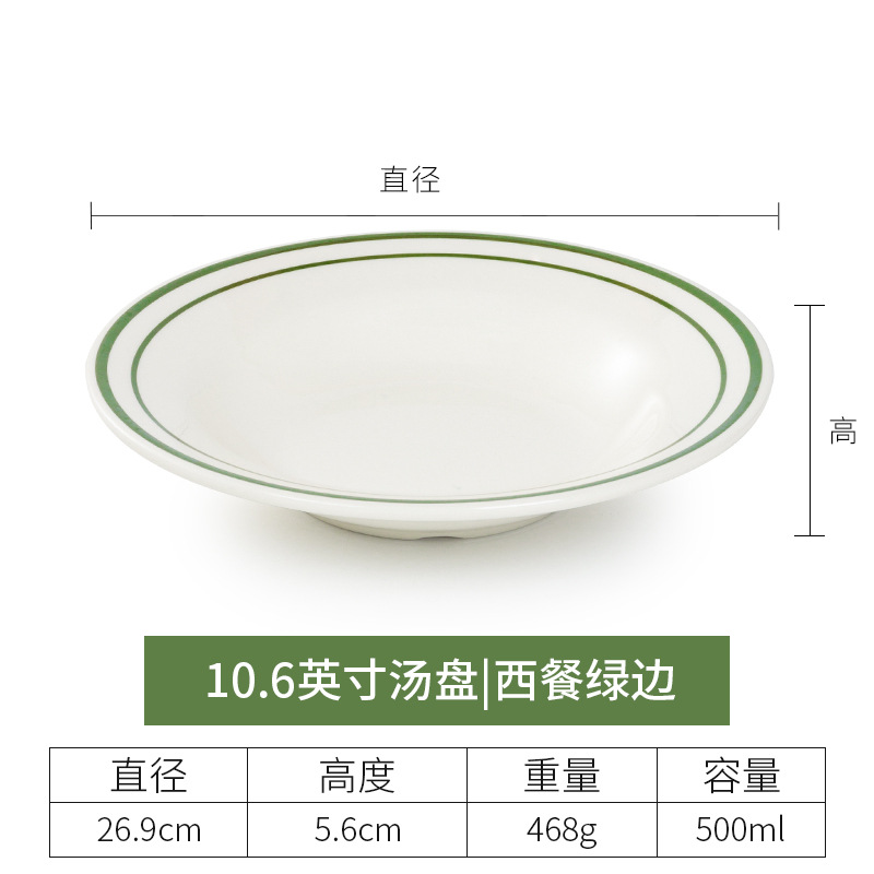 • 10.6 인치 수프 플레이트 (녹색 가장자리가있는 서양 음식)