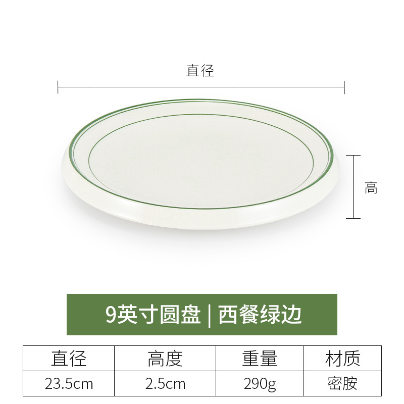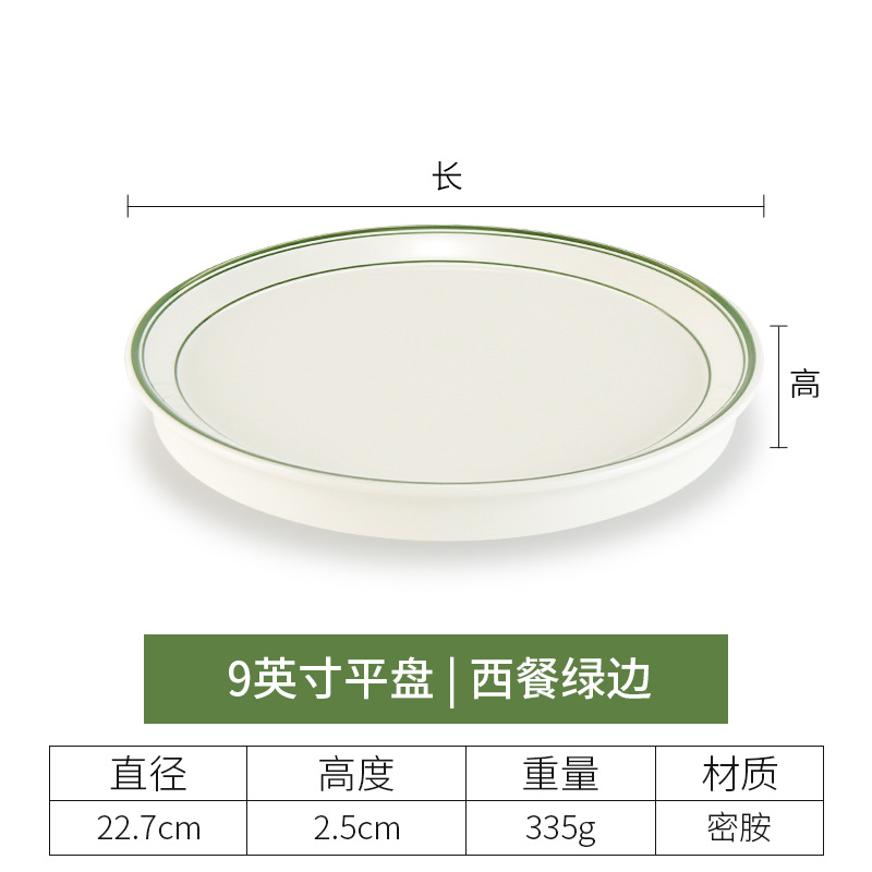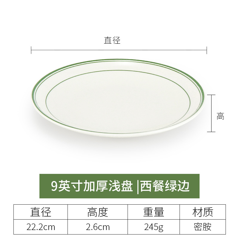 • 9 인치 두꺼운 얕은 접시 (녹색 가장자리가있는 서양 음식)