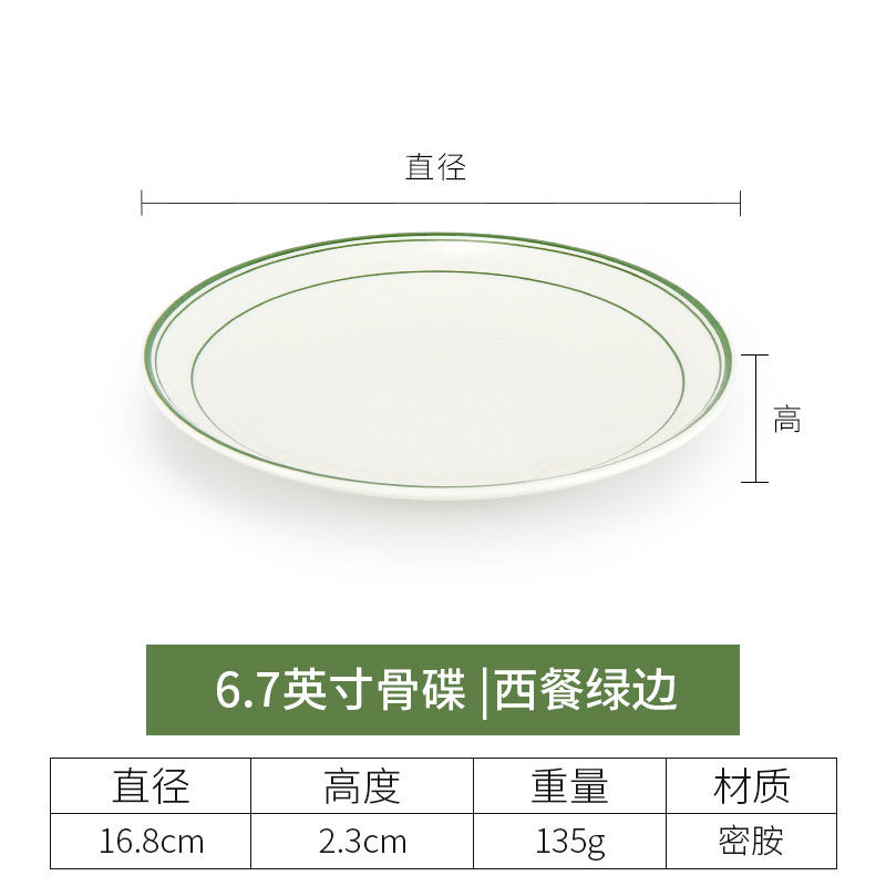 • 6.7 인치 뼈 플레이트 (녹색 가장자리가있는 서양 음식)