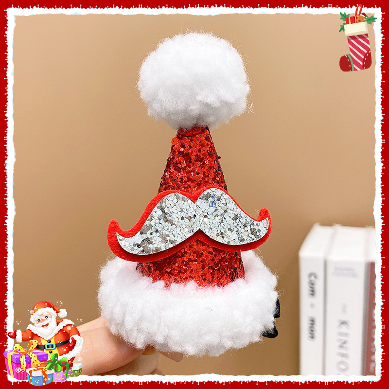 어린이 머리핀 머리 장식 빨간 크리스마스 모자 공연 머리핀 소녀 헤어 액세서리 달콤한 플러시 클립 헤어 액세서리