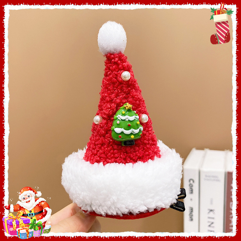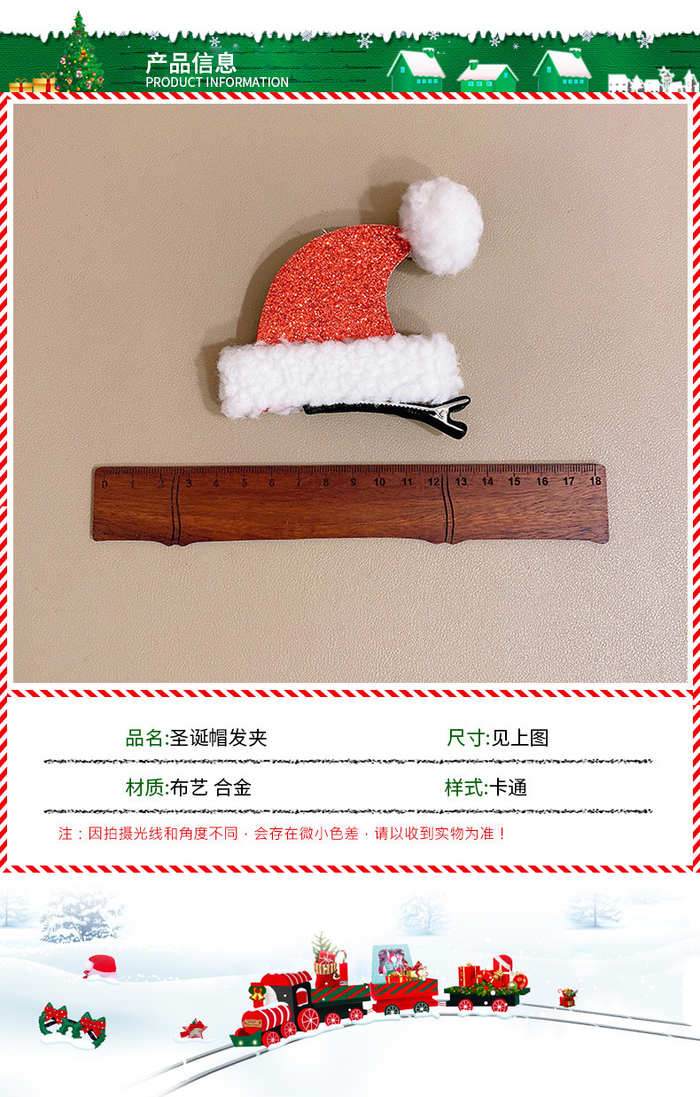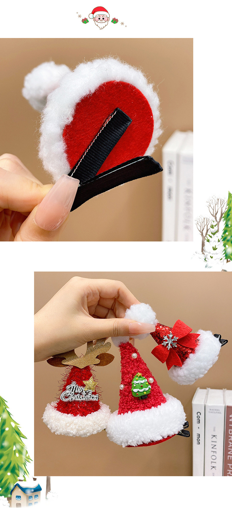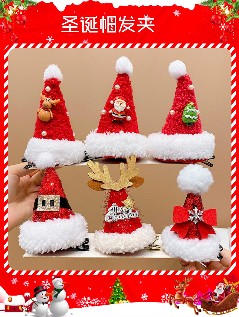 어린이 머리핀 머리 장식 빨간 크리스마스 모자 공연 머리핀 소녀 헤어 액세서리 달콤한 플러시 클립 헤어 액세서리스토어 가기