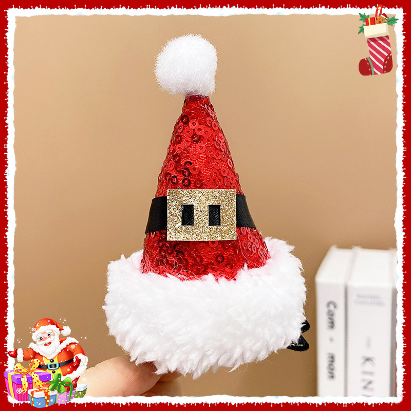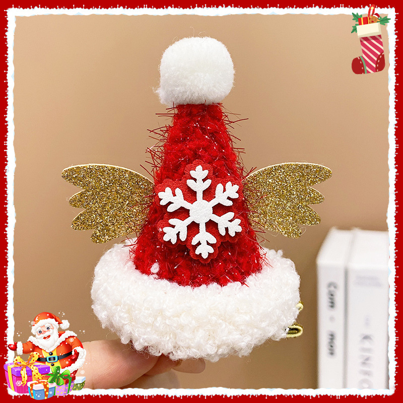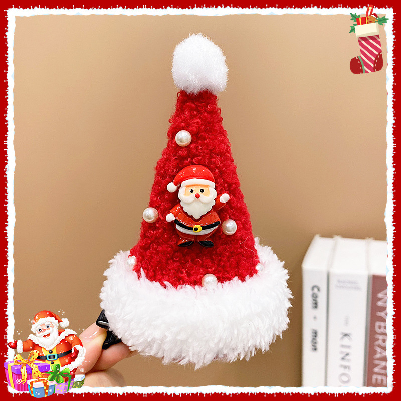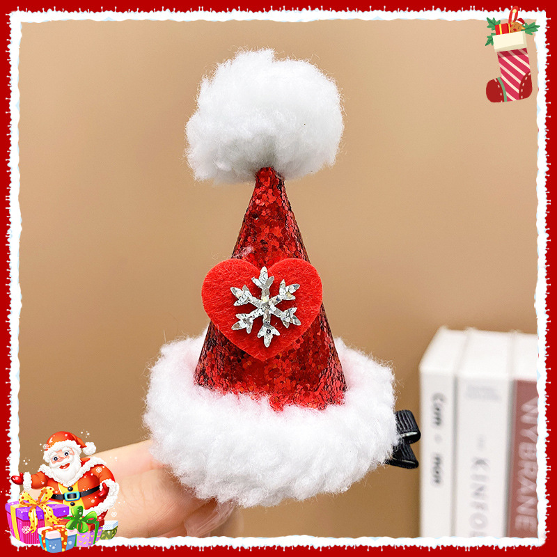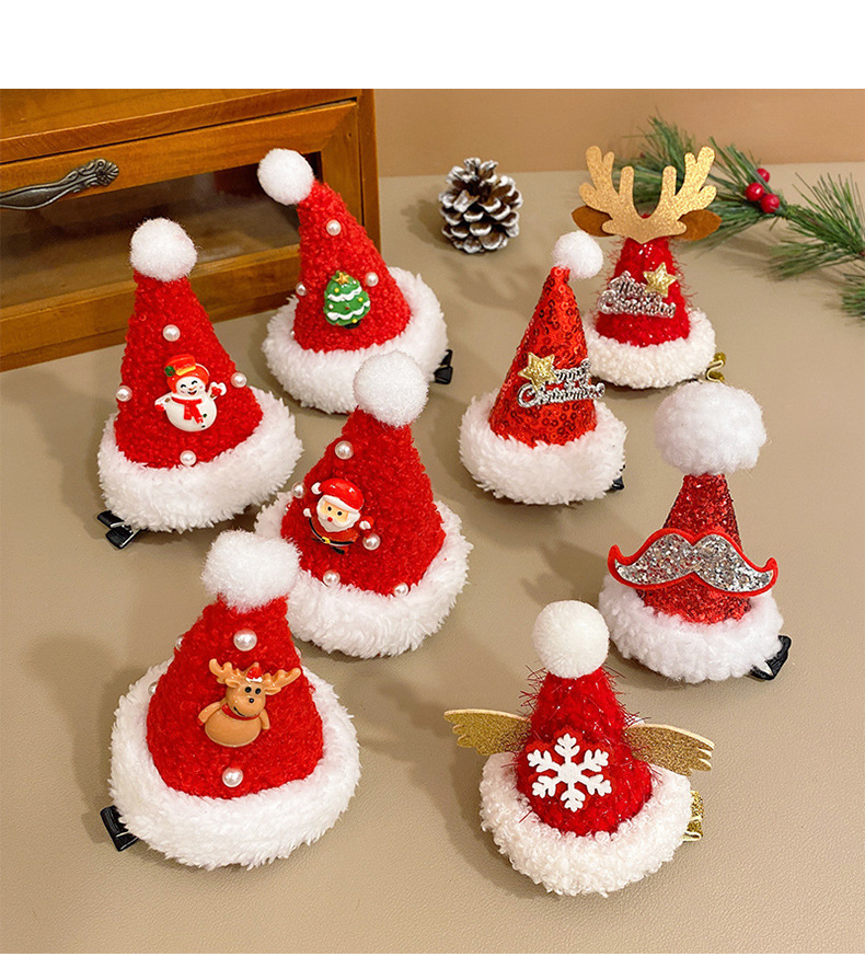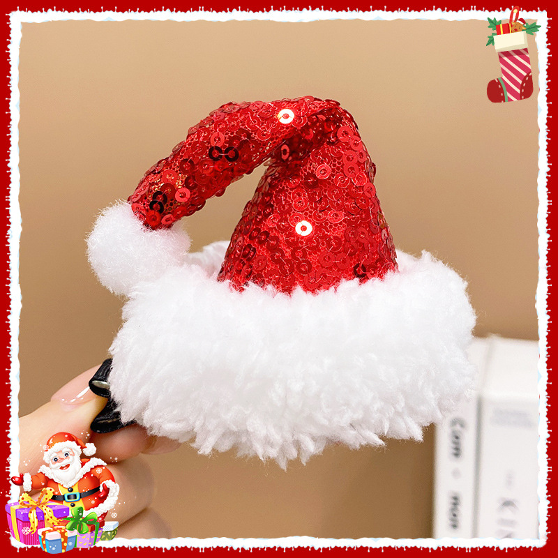 어린이 머리핀 머리 장식 빨간 크리스마스 모자 공연 머리핀 소녀 헤어 액세서리 달콤한 플러시 클립 헤어 액세서리스토어 가기