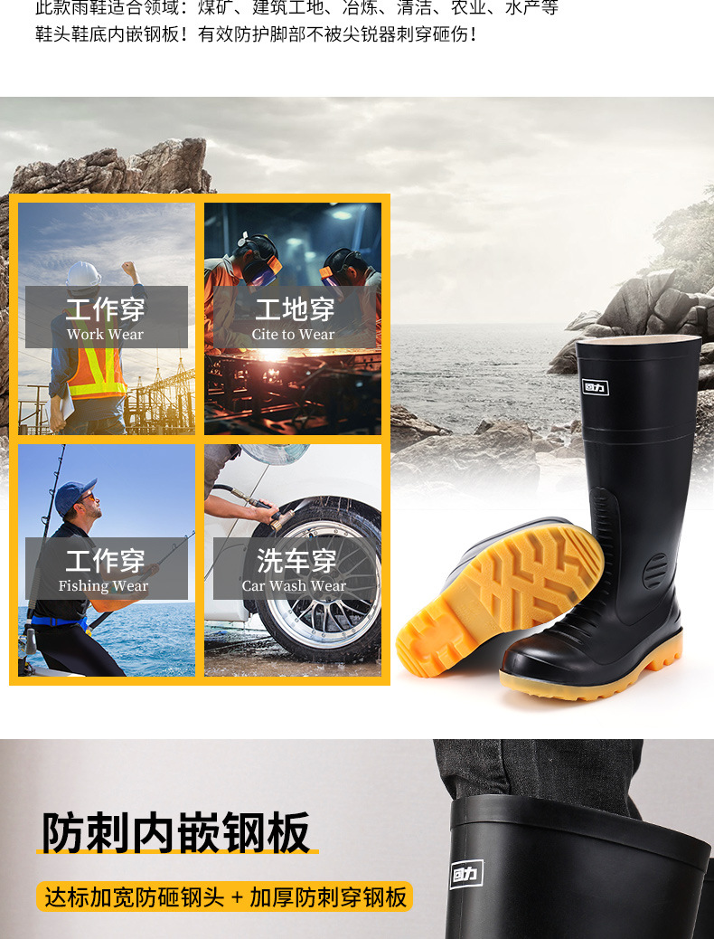 Huili 비 신발 남성 029 안티 스매시 안티 스왑 강판 플러스 노동 보호 장화 방수 미끄럼 방지 하이 워터 슈즈 도매