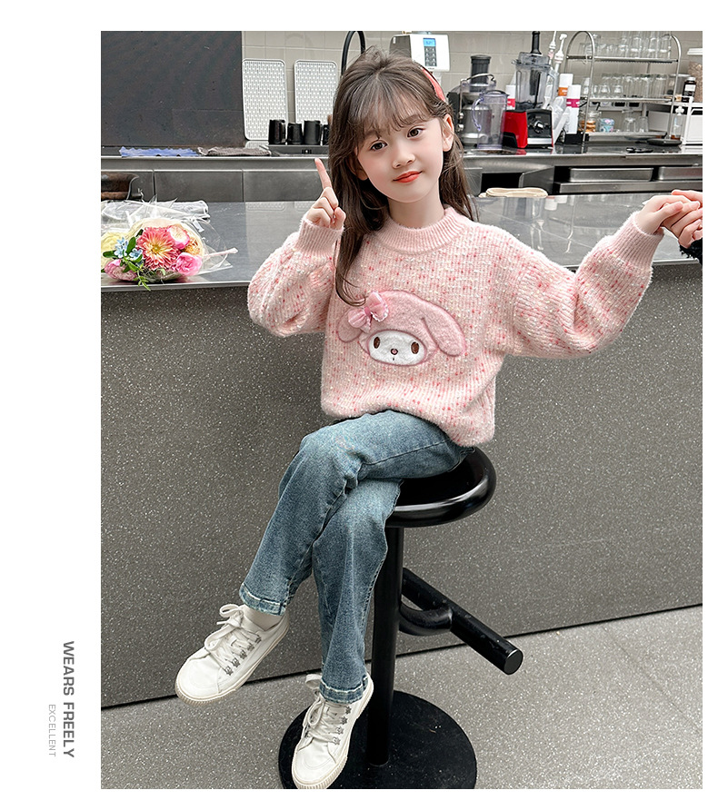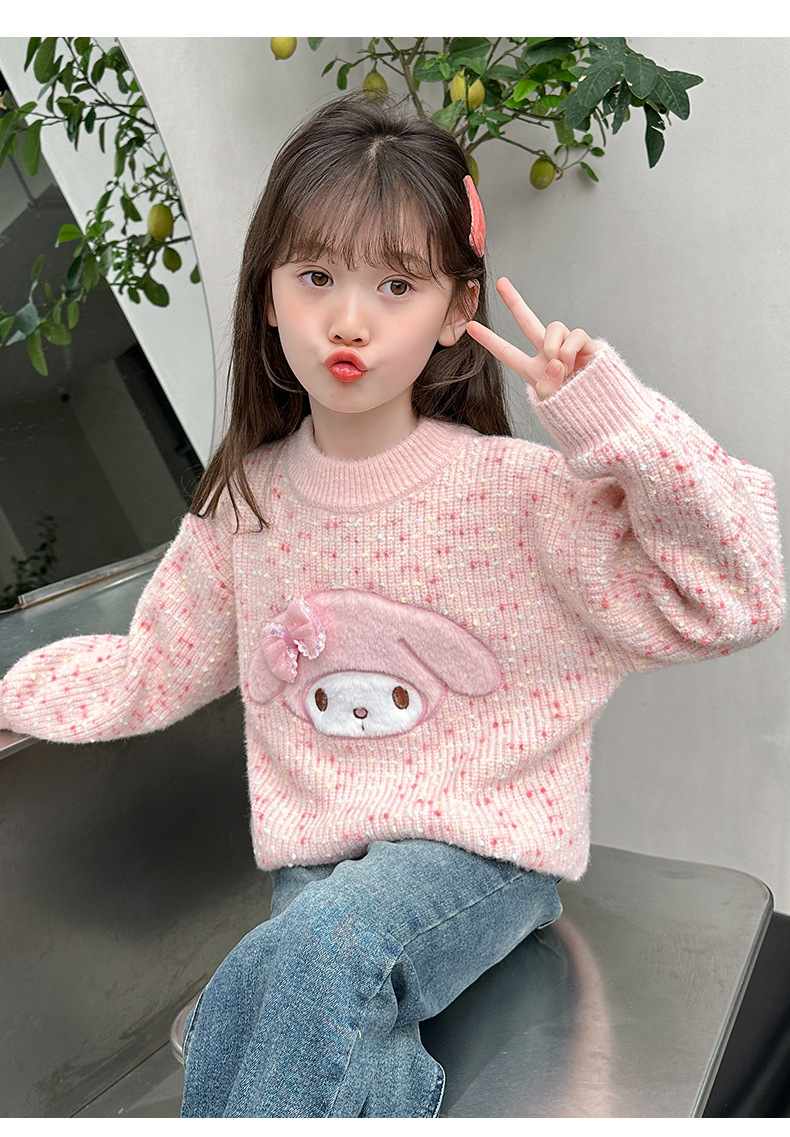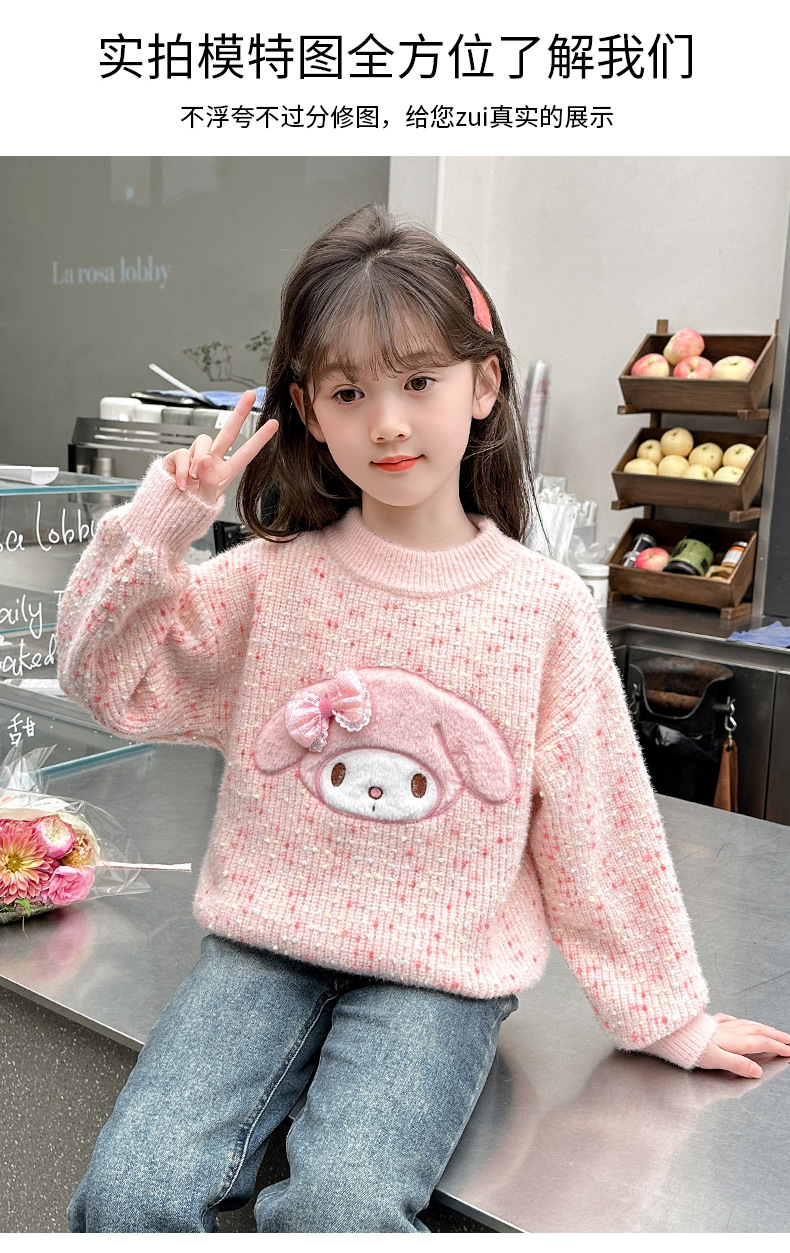 여아 스웨터 겨울 2023 새로운 서양 스타일 어린이 가을과 겨울 인터넷 연예인 어린 소녀의 서양 스타일 쿠로미 기본 의류스토어 가기