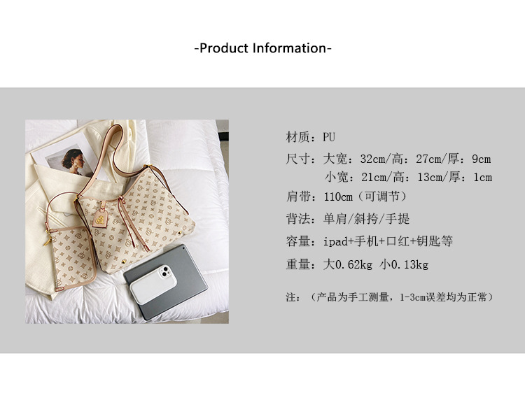 새로운 클래식 대용량 숄더백 우아한 트렌디 한 토트 백 세련된 메신저 백 2023 여성용 유행 인쇄 가방