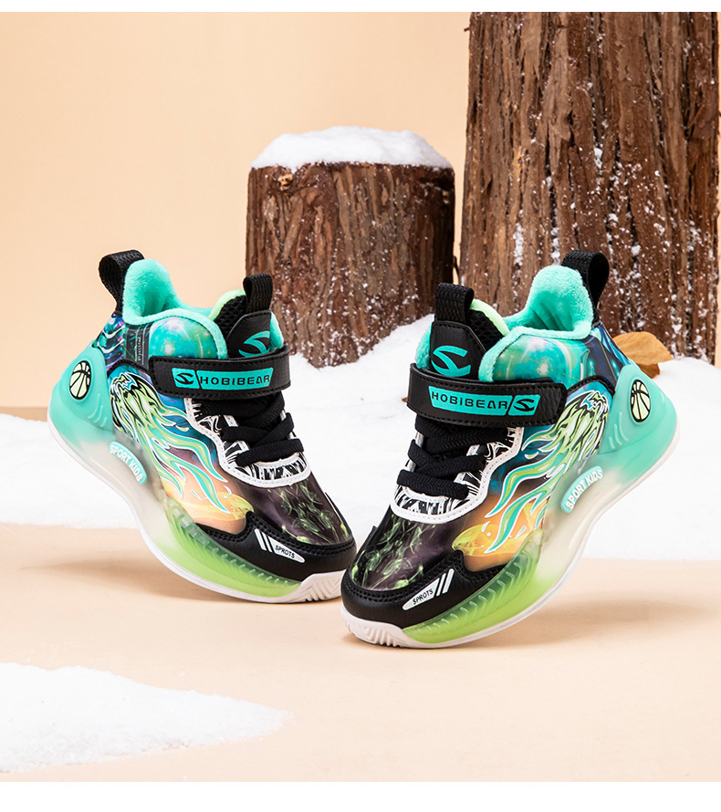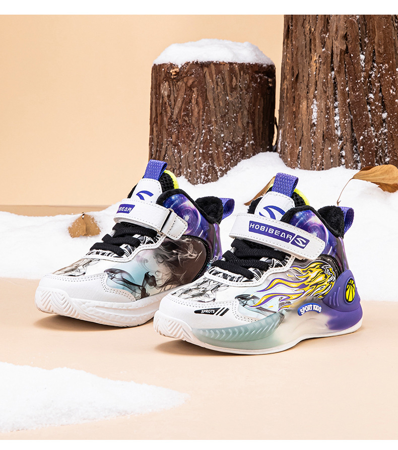하비 곰 면 농구 신발 겨울 소년 기모 운동화 따뜻한 캐주얼 신발 실행 신발 머리카락의 세대