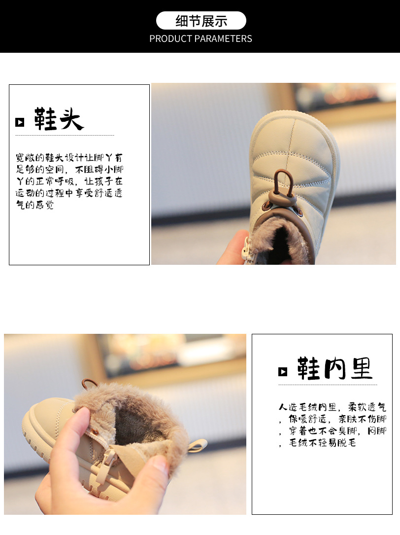 겨울 기모 두꺼운 따뜻한 스노우 부츠 소년과 소녀 아기 미끄럼 방지 빵 신발 1-2-3 세 어린이 면화 신발스토어 가기